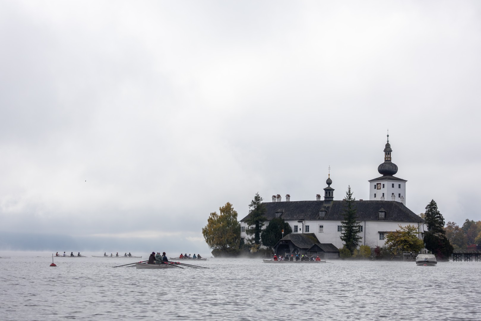 Am vergangenen Sonntag (19.10.25) trafen sich 51 Mitglieder des Gmundner Rudervereins um mit dem traditionellen Abrudern die Sommersaison abzuschließen. Bei eher winterlichen Frühtemperaturen und einem dampfenden See warteten 13 Boote (vom Zweier bis zum Achter) vor dem Schloss Orth um gemeinsam entlang der Esplanade bis zum Stadtplatz zu rudern. Danach zerstreuten sich die Boote über den See mit unterschiedlichen Zielen und letztendlich dem Bootshaus neben dem Gmundner Strandbad um den Tag gemütlich in der Sonne ausklingen zu lassen.
