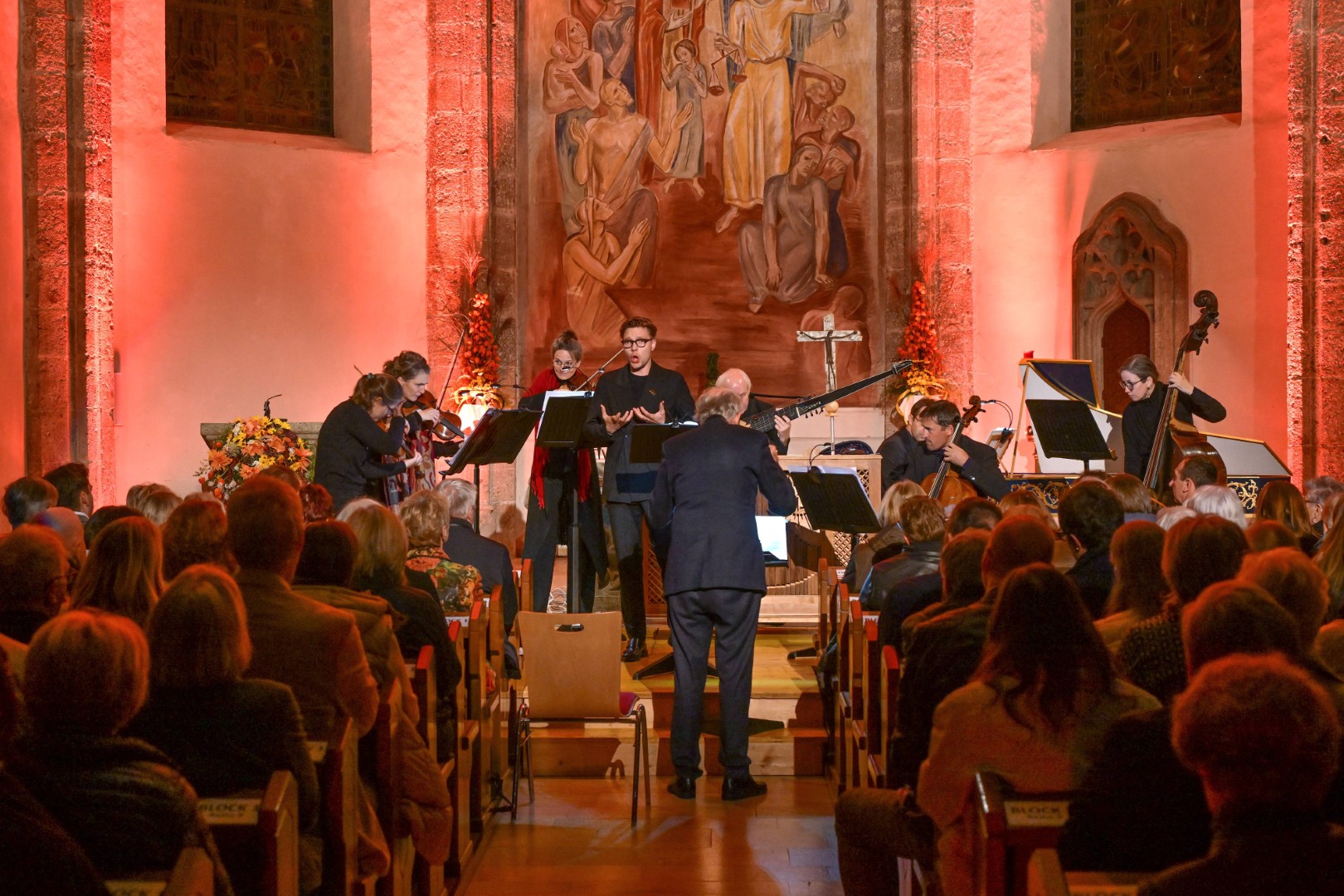 Im Zentrum des Konzertes in der stimmungsvoll beleuchteten Pfarrkirche stand Vivaldis neunteiliges „Nisi Dominus“ – ein Feuerwerk aus starken, kontrastierenden Gefühlswelten. Die unverwechselbare Stimme von Alois Mühlbacher sorgte dabei mehr als einmal für Gänsehautmomente, berührend war vor allem das intime Zwiegespräch seiner Singstimme mit der Viola d´amore, gespielt von Nina Pohn. Ergänzt wurde das Programm mit ausgewählten Opernarien, in denen Countertenor Alois Mühlbacher Emotionen von purer Verzweiflung über Melancholie und Hoffnung bis hin zu Sehnsucht und Liebe erlebbar machte. Franz Farnberger, Leiter des Ensembles Pallidor, führte durch den Abend und brachte dem Publikum auf unterhaltsame Weise das Wesen und die Besonderheiten der barocken Klangwelt näher.