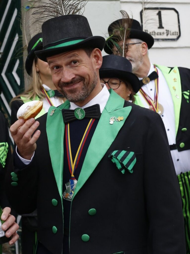 Anschließend werden von Herrn Bürgermeister Krapf und den Komiteemitglieder kostenlos Faschingskrapfen an die Besucher vor dem Rathaus verteilt.