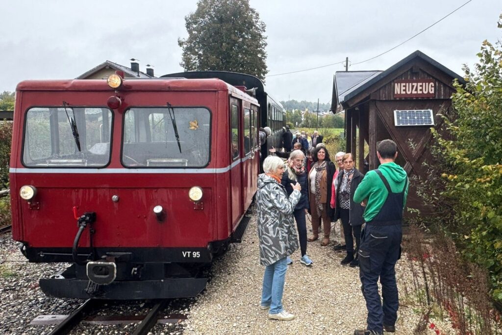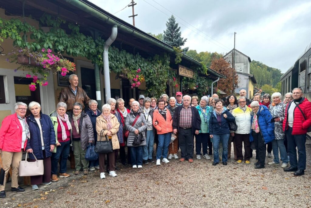 Entschleunigend gings dann am Nachmittag weiter. Die Steyrtal-Museumsbahn fährt durch eines der reizvollsten Täler der Pyhrn-Eisenwurzen-Region vorbei an der Wallfahrtskirche Christkindl dem Flusslauf der Steyr folgend durch Wiesen und unberührte Aulandschaften. Nach gut einer Stunde erreichte die Reisegruppe den Endbahnhof Grünburg.