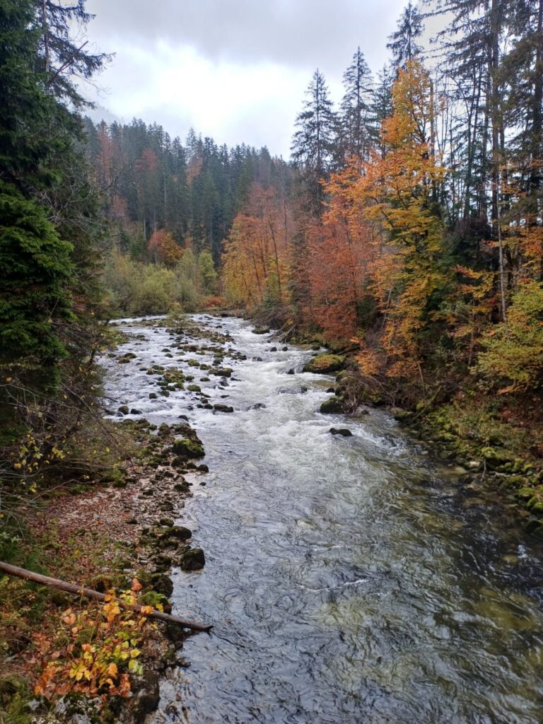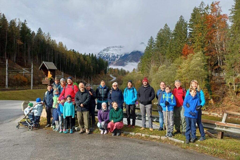 Ziel der Wanderung war der Weg entlang der Koppentraun von Bad Aussee nach Obertraun. Eine ansehnliche Gruppe traf sich am Bahnhof Bad Aussee, bei Beginn noch bei Sonnenschein, später ab der Ortschaft Sarstein mit Regenbegleitung. Der von der herbstlichen Landschaft geprägte Weg führte abwechslungsreich entlang der tobenden Traun, die am Wegrand aufgestellten Tafeln gaben wichtige und interessante Angaben und Informationen. Die Tafel „getrennt und doch vereint“ vermittelte geschichtliche Zusammenhänge für das Salzkammergut.