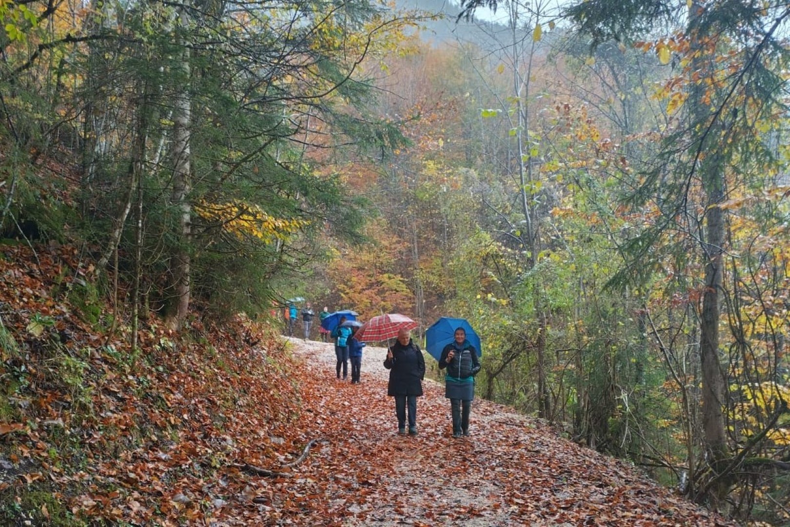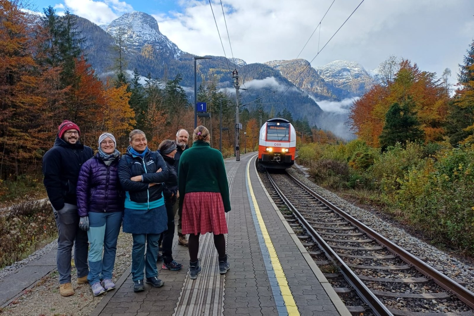Ziel der Wanderung war der Weg entlang der Koppentraun von Bad Aussee nach Obertraun. Eine ansehnliche Gruppe traf sich am Bahnhof Bad Aussee, bei Beginn noch bei Sonnenschein, später ab der Ortschaft Sarstein mit Regenbegleitung. Der von der herbstlichen Landschaft geprägte Weg führte abwechslungsreich entlang der tobenden Traun, die am Wegrand aufgestellten Tafeln gaben wichtige und interessante Angaben und Informationen. Die Tafel „getrennt und doch vereint“ vermittelte geschichtliche Zusammenhänge für das Salzkammergut.