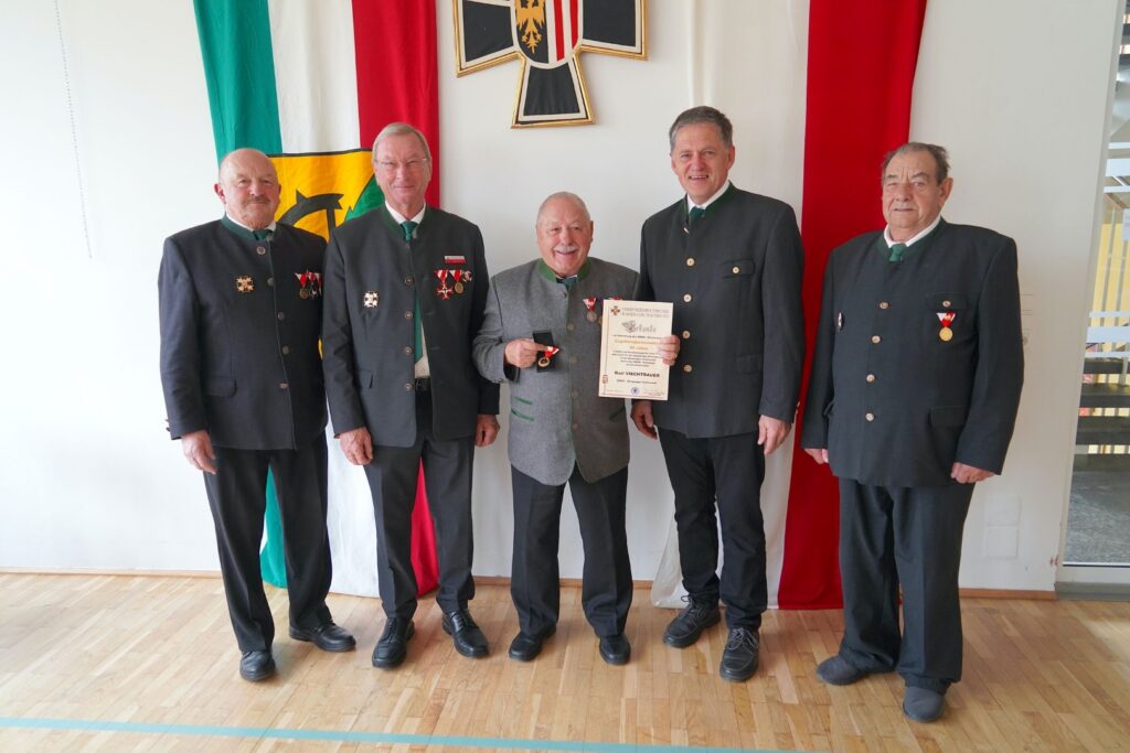 Es folgten dann einige Ehrungen. Eine besondere Ehrung erfolgten an Karl Vichtbaur und an Kurt Viertbauer, Obmann des Pens. Verbandes Gschwandt für sage und schreibe 50. jährige Mitgliedschaft beim Kameradschaftsbund Gschwandt. Mit Grußworten der Ehrengäste konnte Franz Wampl dann die Generalversammlung offiziell schließen und zu einem anschließenden Umtrunk mit Jause herzlich einladen.