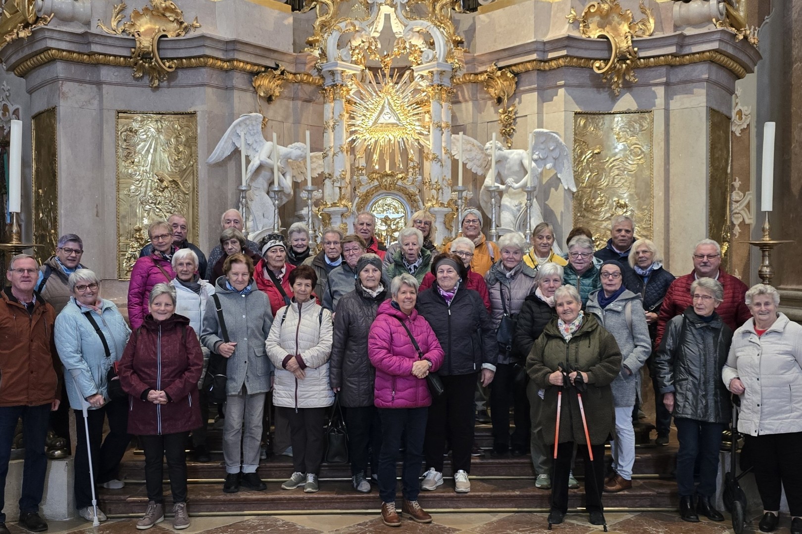Über Kremsmünster, Steyr und Seitenstätten, wo bei der Fahrt die Landschaft des Mostviertel bewundert werden konnte, ging es zur Basilika Sonntagberg, in die Nähe von Waidhofen an der Ybbs. Bei einer sehr kurzweiligen Führung wurde den Ebenseern die Geschichte und Eigenarten der Basilika, wo bereits um 1440 der Grundstein einer Kapelle gelegt wurde, erklärt. Von den Ausführungen des Reiseführers und der reichhaltigen Gestaltung der Basilika waren alle tief beeindruckt. Leider verhinderte der Nebel den wunderschönen Ausblick auf das wunderbare Bergpanorama.