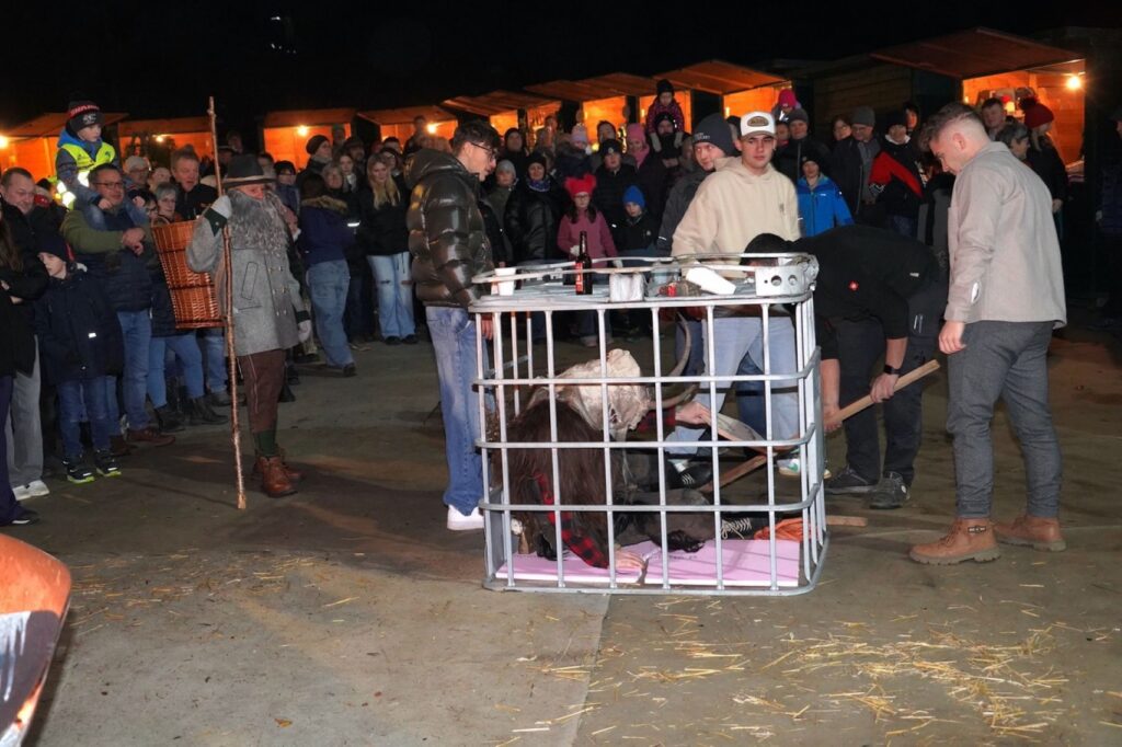 „Wochenlange Vorbereitung vor Ort, Termine über Termine und dann war es soweit“, so Patricia Höller zu ihrem einzigartigen Vorweihnachtsmarkt beim Tierweltmuseum im Aurachtal/Pinsdorf. Um Punkt 16:00 Uhr öffnete ein wirklich einzigartiges Erlebnis – der Vorweihnachtsmarkt von 14. bis 16.11.2025. Am ersten Tag hatte man die Chance alle Kunsthandwerke ohne Gedränge zu bewundern und zu erwerben. Die Aussteller freundlich, auskunftsbereit und noch voller Tatendrang. Auch am Genussplatzl nicht all zu große Wartezeit und die verschiedensten Schmankerl und Getränke zu moderaten Preisen. Gegen 18.00 Uhr füllte sich der Weihnachtsmarkt zusehends und die Spannung auf den Auftritt „D`grantigen Rotzbuam“ bei der Perchten Show wuchs von Minute zu Minute. Mit einer Geschichte über Hexen, Krampus und Perchten begann die Show, wo die Hexe und ein gefangener Krampus in den Hauptrollen vorkamen. Und dann stürmten die finsteren Gestalten den Platz. So mancher Zuschauer wurde auch gefangen und mit den Ruten etwas „versohlt“ und ihm so die „Schneid abgekauft“! Am Ende waren die Krampusse wieder friedlich und zu Fotos bereit.