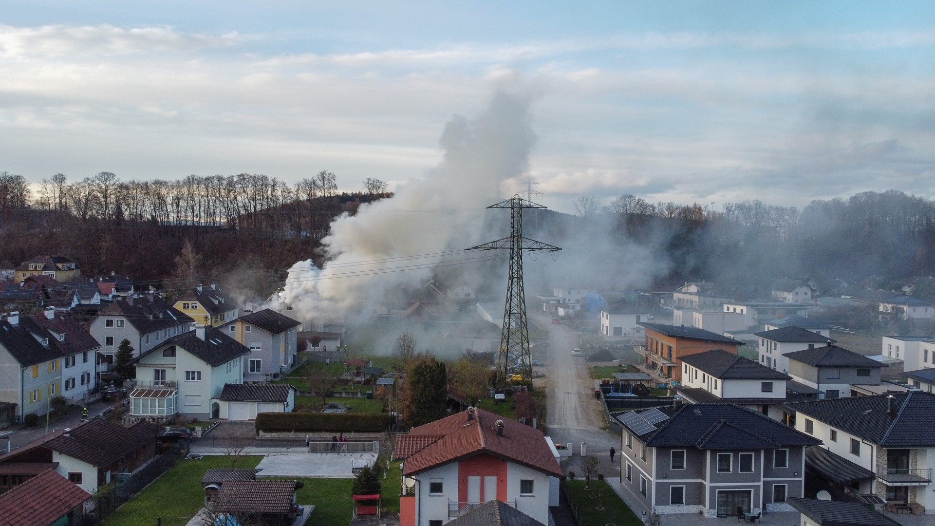 Fünf Feuerwehren standen am Donnerstagnachmittag bei einem Dachstuhlbrand bei einem Doppelhaus in Attnang-Puchheim im Einsatz.