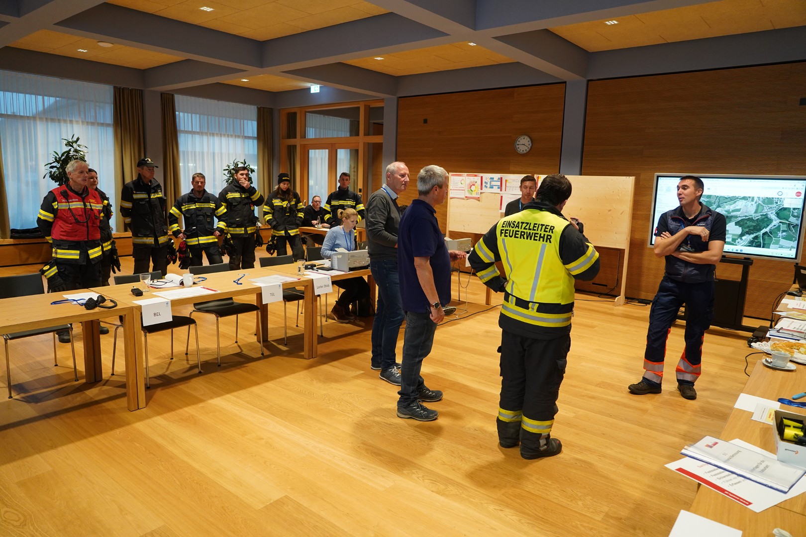 Neben den Mitarbeiter*innen im Stab haben 136 Feuerwehrleute unserer acht Feuerwehren und der FF Badstuben (mit dem Fahrzeug zur Einsatzführungsunterstützung), das Rote Kreuz Frankenmarkt und Mitarbeiter des Gemeindebauhofes teilgenommen.