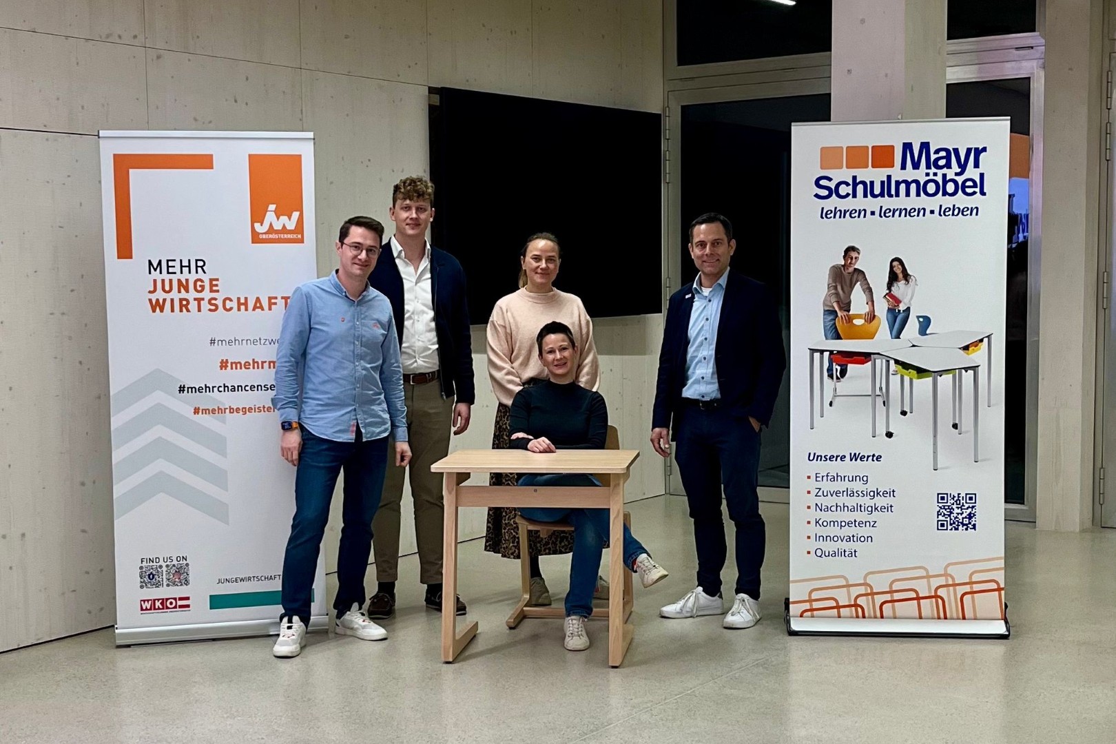Rund 30 JungunternehmerInnen aus dem Bezirk Gmunden folgten der Einladung der JW Gmunden und besuchten den führenden Bildungsraumausstatter Mayr Schulmöbel in Scharnstein. Das Familienunternehmen steht seit Jahrzehnten für Qualität, Innovation und nachhaltige Produktion und beschäftigt rund 180 MitarbeiterInnen, in den Sommermonaten sogar bis zu 230 Personen.