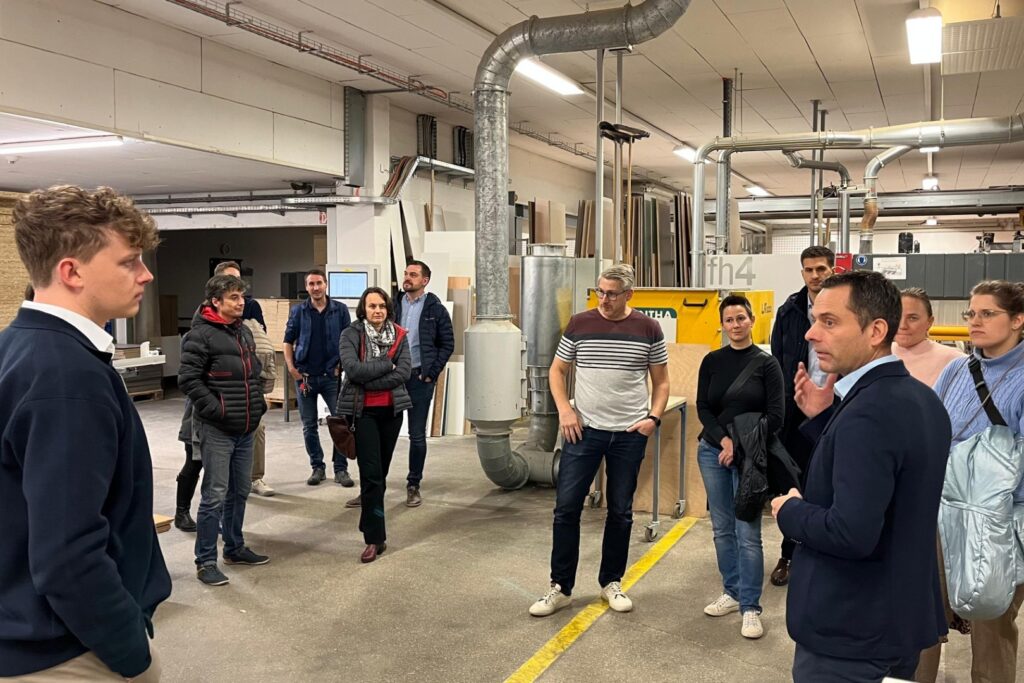 Bei der anschließenden Betriebsführung präsentierte Geschäftsführer Ing. Florian Huemer nicht nur die vielfältigen Produktionsbereiche, sondern auch aktuelle Innovationen: Dazu zählen neu entwickelte Schülersessel und -tische aus Massivholz, um noch mehr nachwachsende Rohstoffe in Schulen zu bringen. Ein besonderes Highlight ist der neue „Mayr Campus“ Bürokomplex, ein energieautarkes Gebäude in ökologischer Holzbauweise mit Lehmputz.