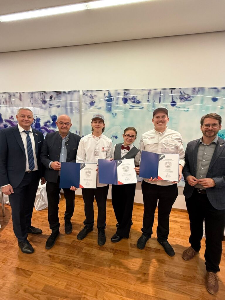 Ein besonderer Dank gilt den Juror:innen und Shopmaster:innen, die durch ihre Expertise und ihr Engagement für faire und professionelle Wettbewerbsbedingungen sorgten. Gerold Royda, Bundesausbildungsexperte der Gastronomie und Hotellerie sowie Spartenobmann der Tourismus- und Freizeitwirtschaft und Wirtesprecher in Oberösterreich, gratulierte gemeinsam mit Direktor Armin Lenz allen Teilnehmer:innen herzlich zu ihren herausragenden Leistungen und überreichte die Teilnahmeurkunden.