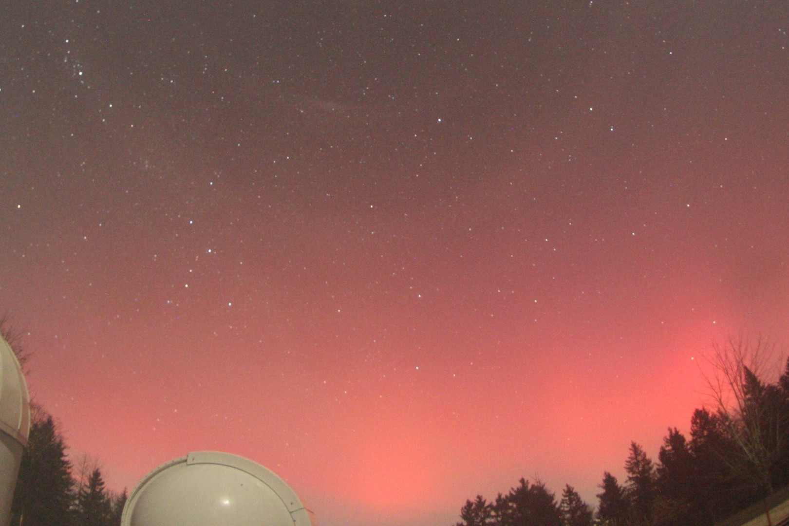 Mit der Meteoritenüberwachungskamera der Sternwarte Gahberg (Projekt Erwin Filimon) konnten die Polarlichter, die bis in die Morgendämmerung zu sehen waren, festgehalten werden.