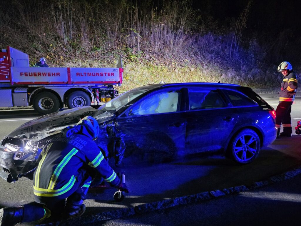 Ein Autofahrer geriet Mittwochabend aus unbekannter Ursache im Gemeindegebiet von Altmünster auf die Gegenfahrbahn der B145 und streifte einen Kombi.