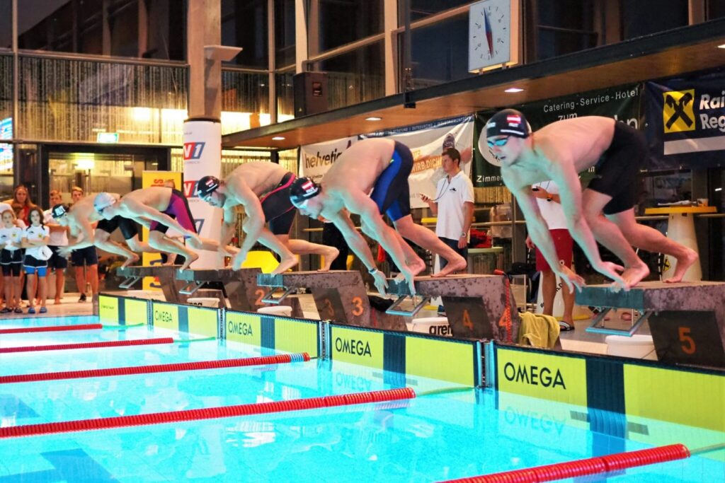 Traditionell bildet den Abschluss des ersten Wettkampftages um ca. 18:45 Uhr das packende Australische Finale für Damen und Herren: Die sechs schnellsten Schwimmer über 100 m Freistil treten in fünf Runden über 50 m Freistil gegeneinander an – nach jeder Runde scheidet der Letztplatzierte aus, bis der Sieger feststeht. Für das Publikum besonders spannend: Auch einige Vöcklabrucker Schwimmer haben gute Chancen, sich für das Finale zu qualifizieren und werden vom Heimpublikum zu Bestleistungen motiviert. Das Starterfeld ist allerdings gespickt mit Top-Athleten wie Vize-Juniorenweltmeister Lukas Edl (Welser TV 1862) oder WM-Teilnehmer Alexander Trampitsch (ASV Linz), und der Kampf um die Finalplätze wird somit kein leichter.