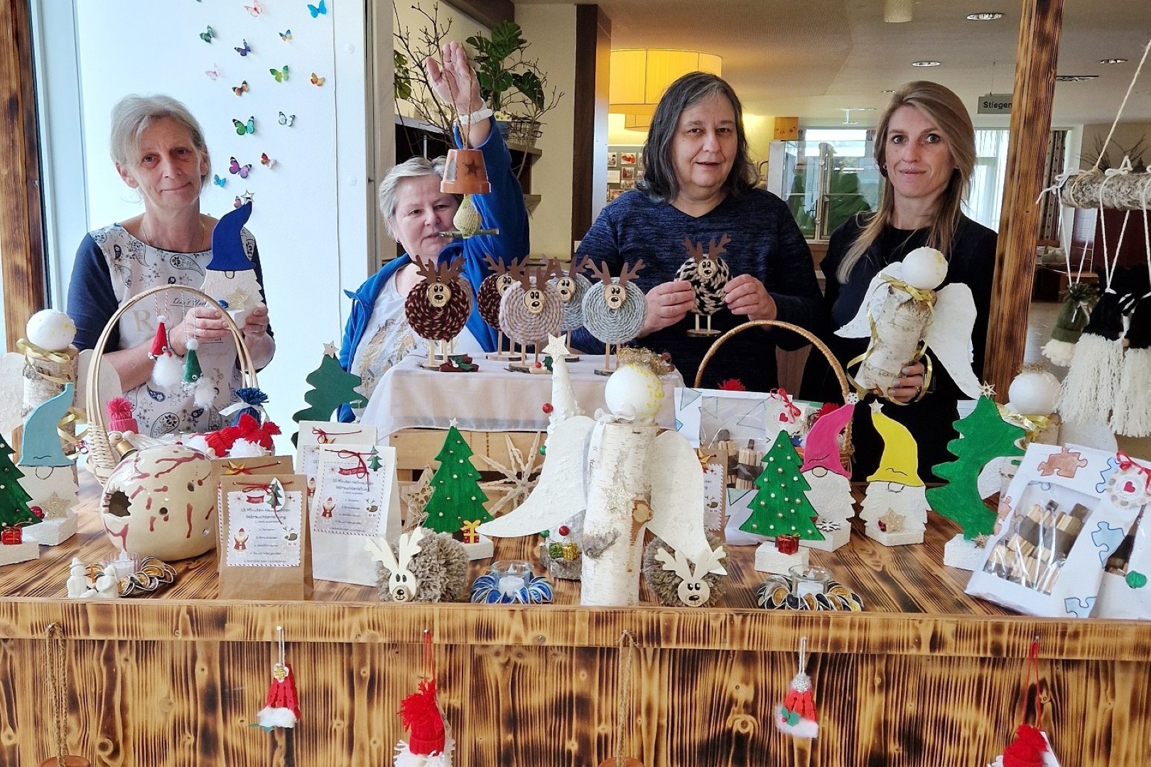 In den Werkstätten entstehen mit viel Sorgfalt und Können Produkte aus Holz, Ton, Papier, Pailletten und Wolle. Besonders beliebt ist das Produkt „Weihnachten in der Tüte“, an dem auch Nadine mitgearbeitet hat: „Das hat mir eine besondere Freude gemacht, weil eine schöne Geschichte im Sackerl verpackt ist.“ Kathrin war im Vorfeld beim Adventkranzbinden dabei und freut sich darauf, die kunstvoll geschmückten Kränze am Markt verkaufen zu können.