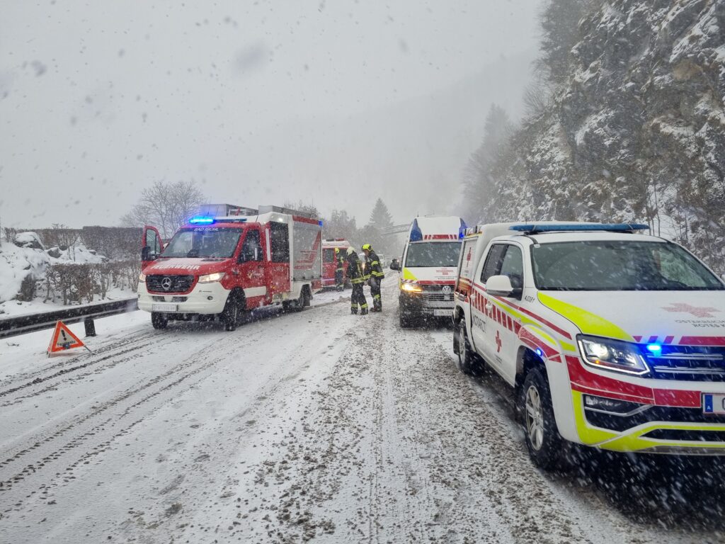 Dienstagmittag wurden die Feuerwehren Lauffen, Bad Ischl, Pfandl und Bad Goisern zu einem Verkehrsunfall mit Personenrettung nach Lauffen alarmiert. Bei einer Kollision in einer Kurve der B145 stießen insgesamt drei Fahrzeuge zusammen.
