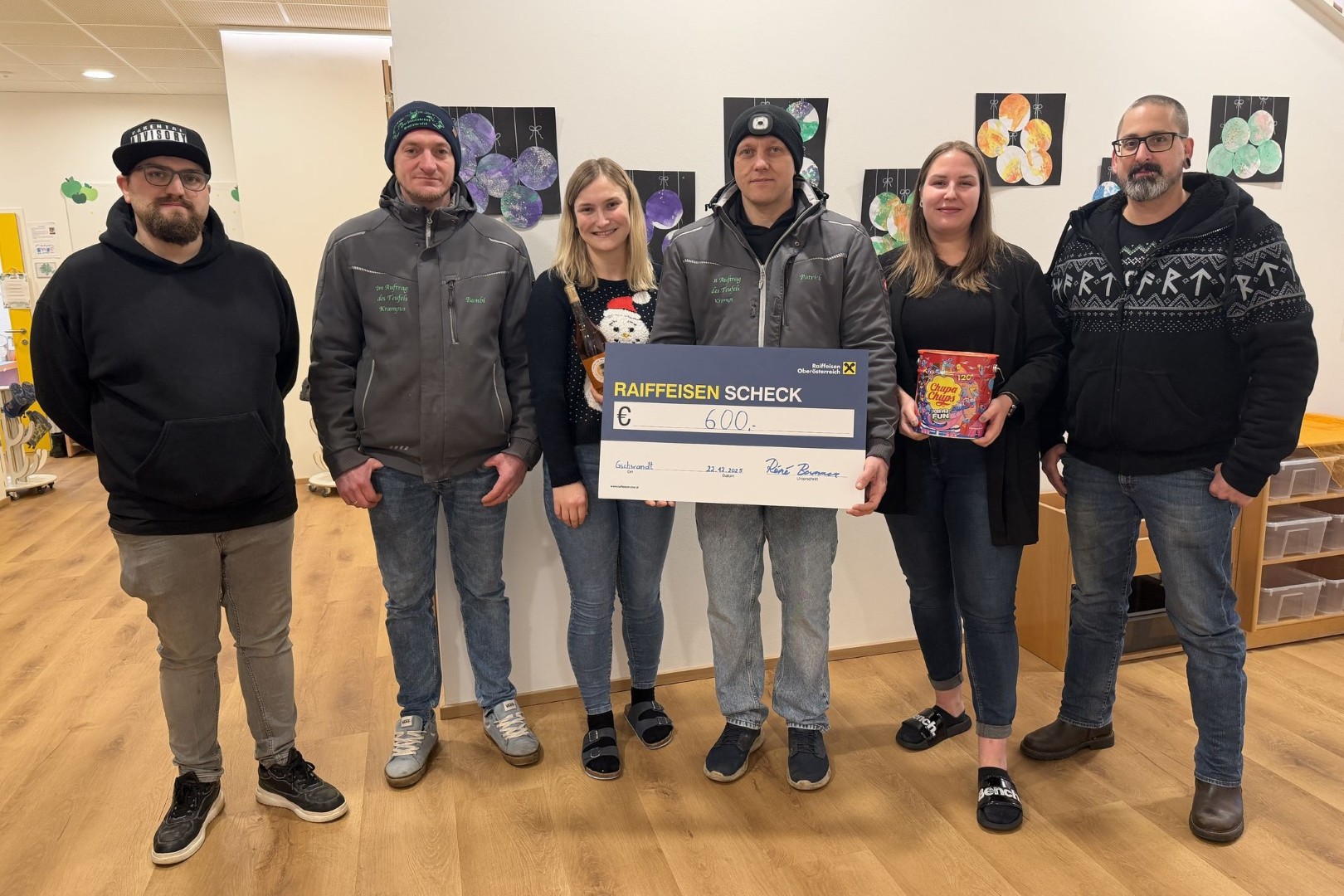 Die Gschwandtner Höllenteufel haben auch dieses Jahr einen großen Krampuslauf in Gschwandt veranstaltet. Der Riesenaufwand bei dieser Großveranstaltung mit mehr als 300 Mitwirkenden und über 1000 Besuchern erbrachte einen Reingewinn von 600,- Euro. Diesen Betrag und Süßigkeiten überbrachten Montag 22.12.2025 quasi als vorzeitiges Weihnachtsgeschenk die Mitglieder Rene BAMMER,  Philip SCHÖGL, Thomas RAFFELSBERGER und Patrick AURINGER der Krabbelstubenleiterin Katharina SIEBERER, die sich natürlich sehr freute und sich auch herzlich bedankte.
