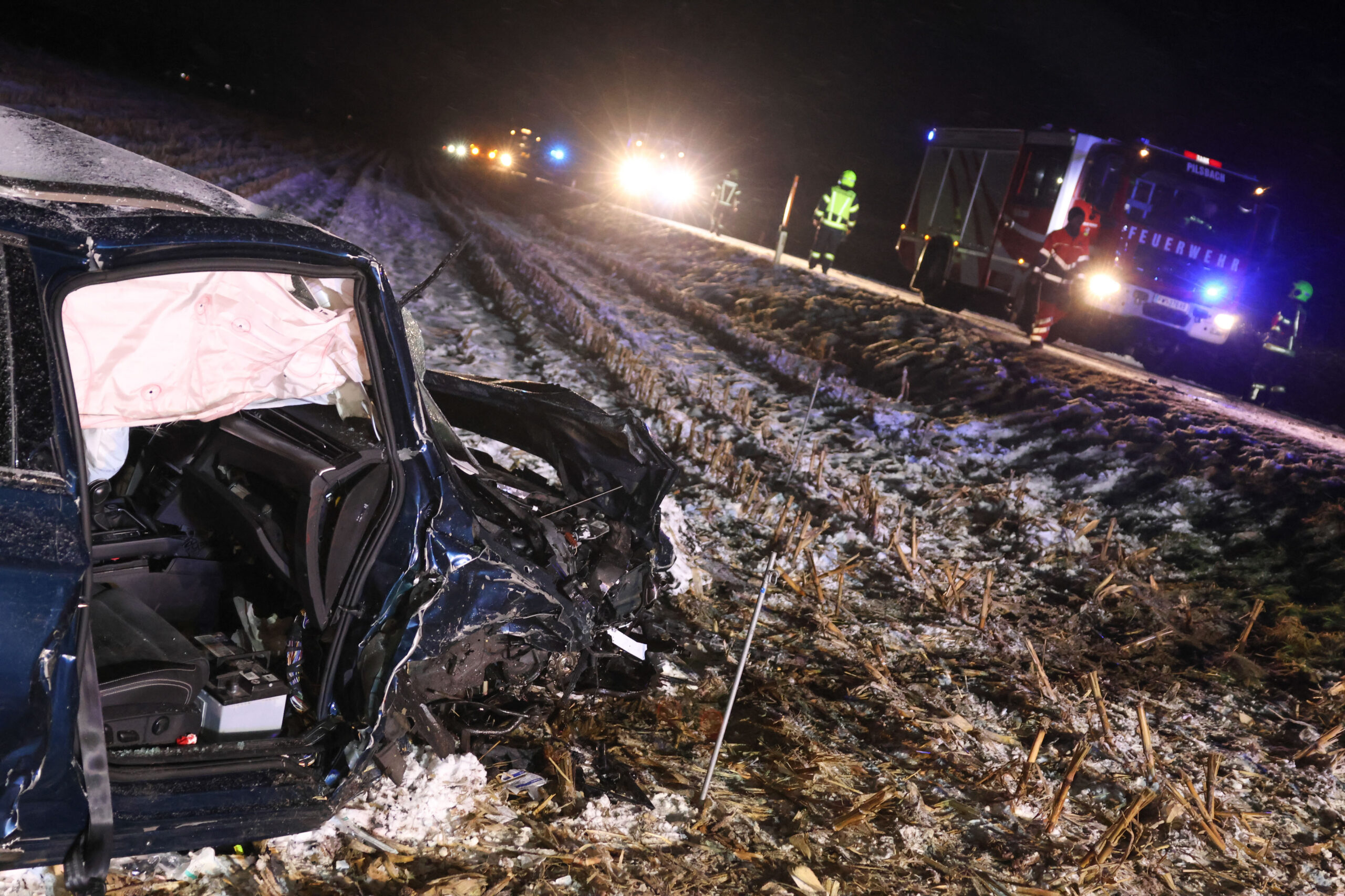 Der Unfall passierte Mittwochabend auf der L1268 Pilsbacher Straße im Gemeindegebiet von Manning. Aus noch unbekannter Ursache kam es dort zu einer Frontalkollision zwischen zwei PKW. Beide Unfallfahrzeuge wurden in die angrenzenden Felder geschleudert. Aus einem – mit vier Personen besetzten PKW – mussten die Einsatzkräfte eine eingeklemmte Beifahrerin aus dem Fahrzeug befreien. Im zweiten Fahrzeug befand sich der Lenker allein im Auto.