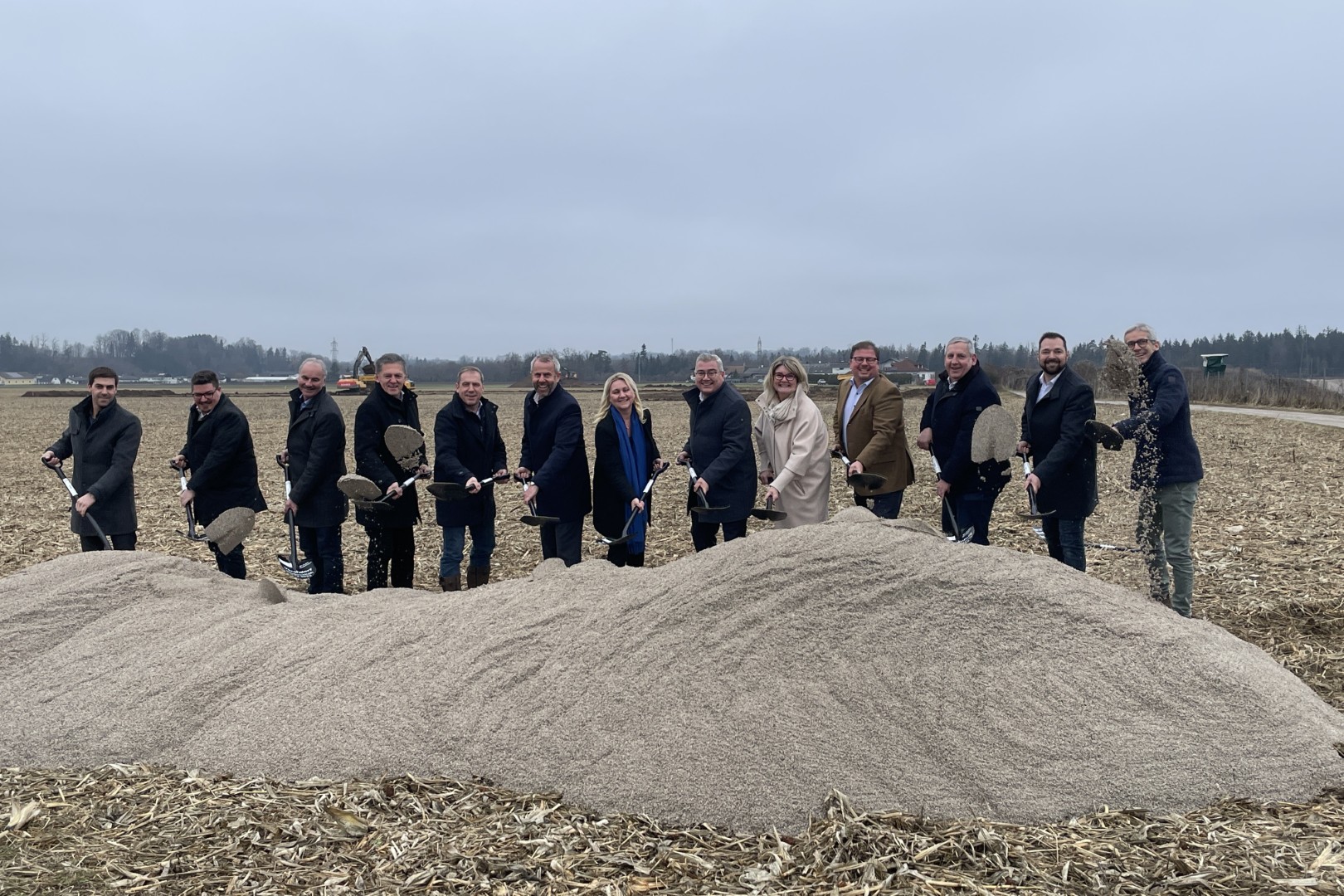 „Mit dem Spatenstich durch den Vorstand der INKOBA Salzkammergut Nord wurde am Dienstag, 3.12. der Start der nächsten Ausbauphase des INKOBA Gebiets in Vorchdorf Feldham eingeleitet“, freut sich INKOBA Salzkammergut Nord Obmann Bgm Ingo Dörflinger über den nun erreichten Meilenstein. „In den nächsten Jahren wird das 17ha große Gebiet um durchschnittlich 10 Meter tiefer gelegt. Damit kann einerseits das am Standort vorhandene Kiesvorkommen genutzt werden und andererseits anschließend das Betriebsbaugebiet in einer landschaftlich sehr verträglichen Weise realisiert werden“, erläutert Obmann Dörflinger die anstehenden Aktivitäten.
