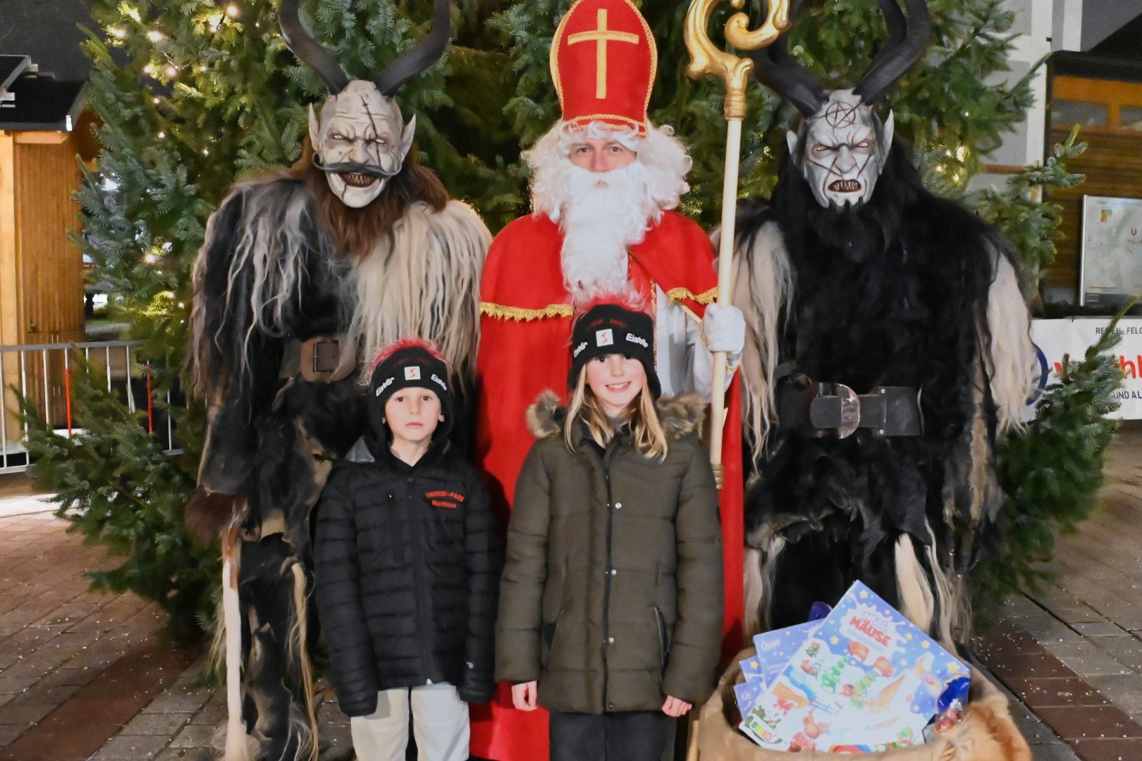 Wenn der Nikolaus kommt, bringt er traditionell seine Gehilfen mit, meistens handelt es sich dabei um Krampusse. So war es auch am Gemeindeplatz in Altmünster, wo am Abend des 3. Dezember zahlreiche Kinder vor dem Gemeindeamt versammelt waren, um den heiligen Nikolaus willkommen zu heißen. Bei seiner Ankunft wurde der Nikolaus von zwei Perchten begleitet, die jedoch harmlos auftraten und die braven Kinder mit Geschenken erfreuten.