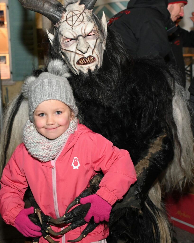 Nach dem Lauf mischten sich die teilnehmenden Perchten unter das Publikum und standen für Fotosessions zur Verfügung. So fand ein „höllisch beschaulicher“ Abend im Zentrum von Altmünster seinen Abschluss.