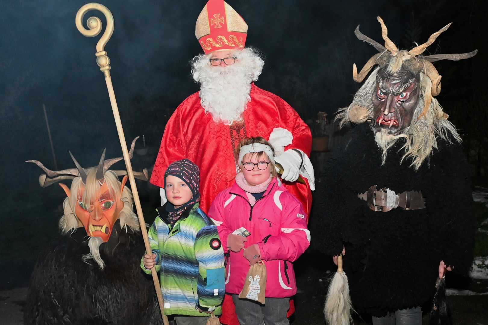 Trotz der imposanten Begleiter müssen die anwesenden Kinder keine Angst haben. Aus dem goldenen Buch liest der heilige Mann vor, dass alle Kinder stets brav gewesen sind, fleißig für die Schule gelernt haben und sogar ein kleines Geschenk für den Nikolaus vorbereitet haben. Als Anerkennung erhalten die Kinder Süßigkeiten, Nüsse und Obst vom Nikolaus.