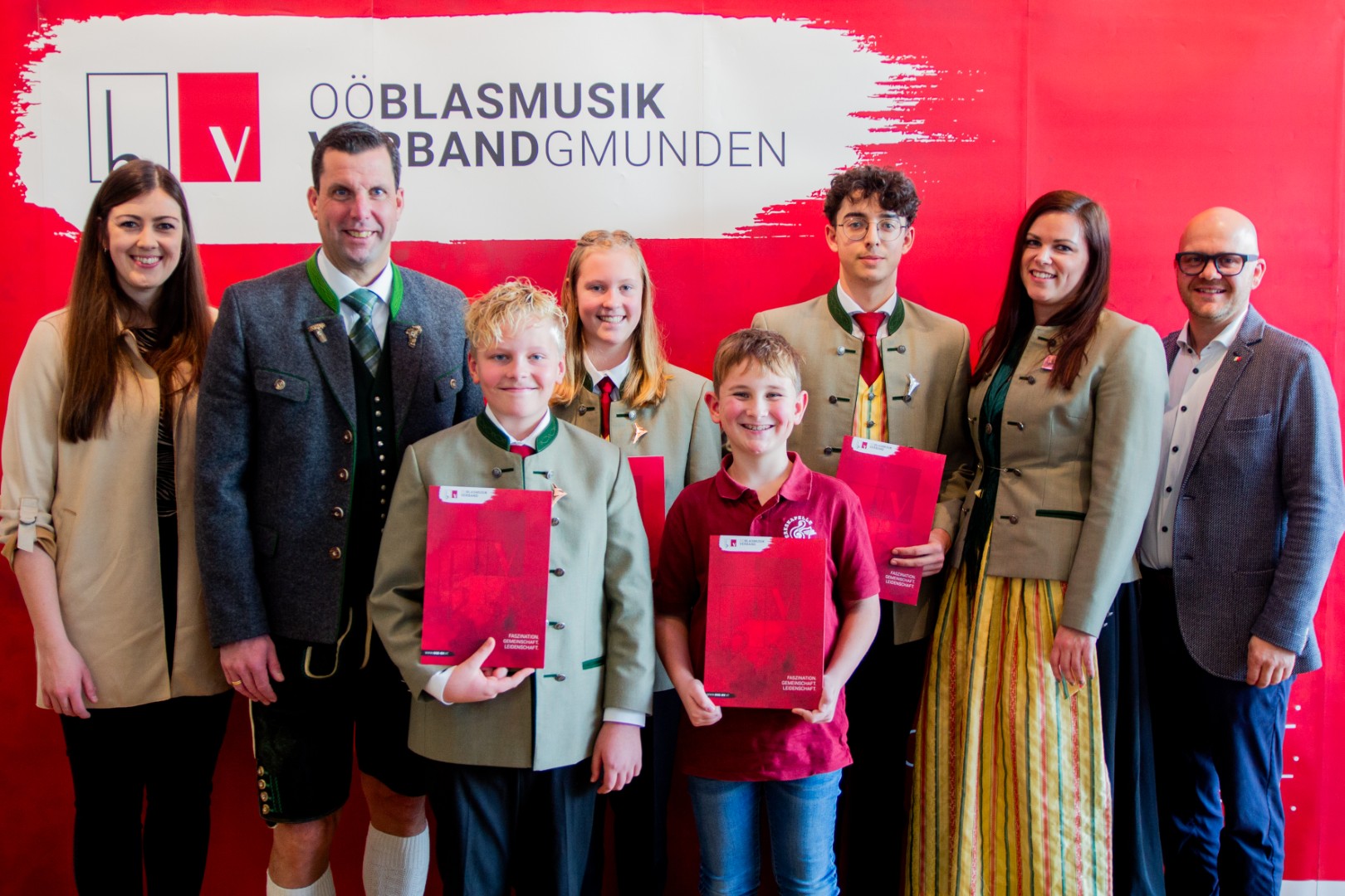 Organisiert von der Bezirksleitung Gmunden, erhielten auch vier junge Talente der Werkskapelle Laufen Gmunden-Engelhof ihre Leistungsabzeichen: