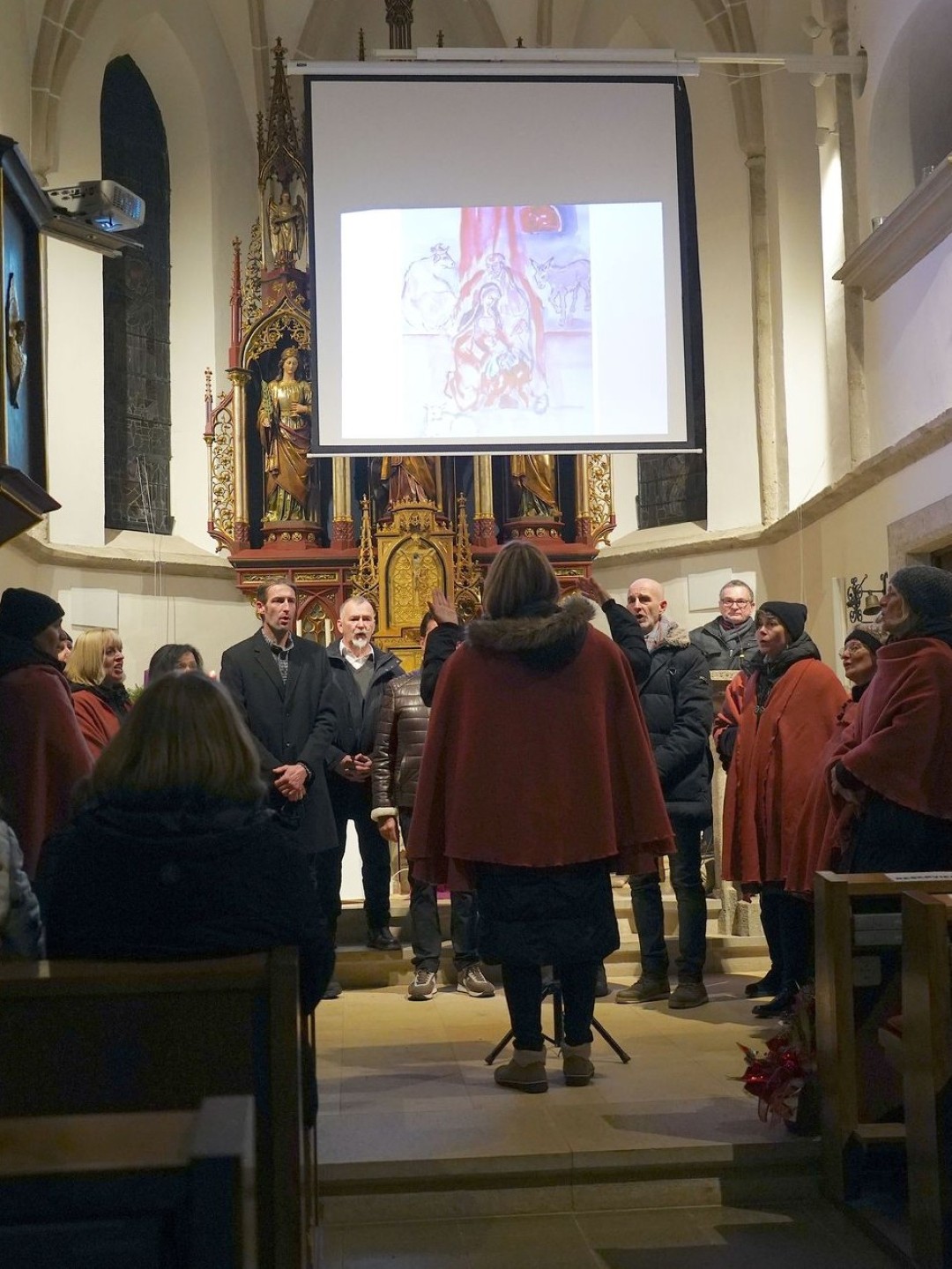 Unter diesem Titel trug der gemischte Chor Singkreis Untertweng SKU Nockxsang aus Kärnten die Weihnachtsgeschichte „Weihnacht werd – eine musikalische Erzählung“ am Samstag 13.12.2025 in der Pfarrkirche Gschwandt vor. Möglich machte dies Gschwandts Pfarrseelsorgerin Anna-Maria Marschner, die die Chorleiterin Heidrun Zimmermann vor 18 Jahren beim Projekt FAMUNDI in Bolivien kennen lernte. So entstand eine innige Freundschaft und der diesjährige Chor Ausflug führte nach Gmunden. Natürlich schlug Anna-Maria Marschner vor, ob nicht ein Konzert der Weihnachtsgeschichte in der Pfarrkirche stattfinden könnte.