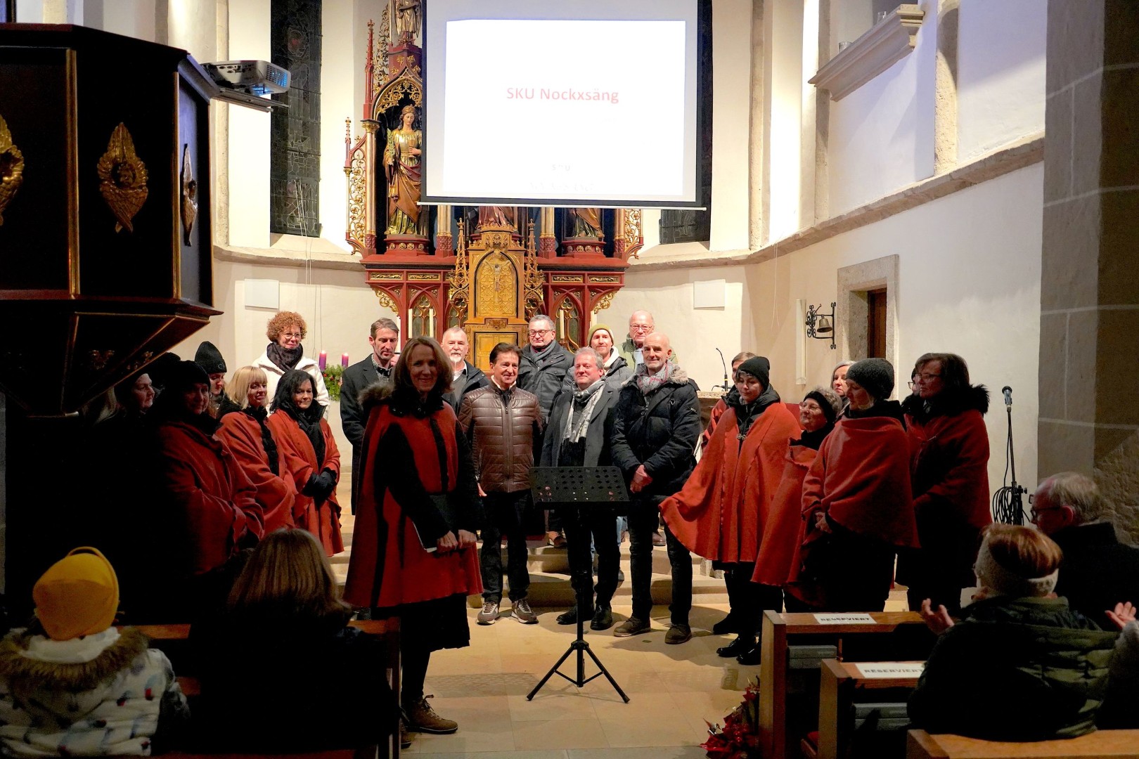 Welches geschah am Samstag, den 13.12.2025, wo viele Besucher den Kirchenraum füllten. Wunderschöne Texte, stimmungsvolle Lieder und tolle Bilder von Horst Drumel ließen eine weihnachtliche Stimmung bei diesem Hörspiel aufkommen. Die wunderschönen Stimmen und die vorgetragenen Texte über die Geschichte der Geburt Jesu zogen alle Zuhörerinnen und Zuhörer in ihren Bann. Die Krönung war als letztes Lied das „Stille Nacht, heilige Nacht“. Mit tosendem Applaus bedankten sich die Besucher am Ende der Vorstellung und vor der Kirche konnte man dann bei den Chormitgliedern die „Weihnacht werd CD“ erwerben und auch noch persönliche Gespräche führen. Am Sonntag 14.12.2025 untermalte der SKU Nockxsang Chor auch noch die heilige Messe um 9:00 Uhr in der Pfarrkirche Gschwandt mit ihrem Gesang. Ja, die Weihnacht ist nicht mehr weit und diese Auftritte waren eine perfekte Einstimmung darauf!