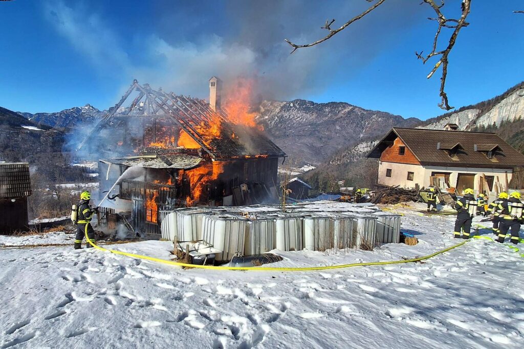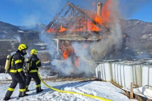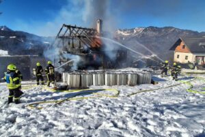 Montagmittag wurden die Feuerwehren der Marktgemeinde Bad Goiserns zu einem Brand auf einem Bauernhof in abgelegener Lage alarmiert. Auf einem Gehöft auf ca. 800 Metern Seehöhe stand ein Dachstuhl in Brand.