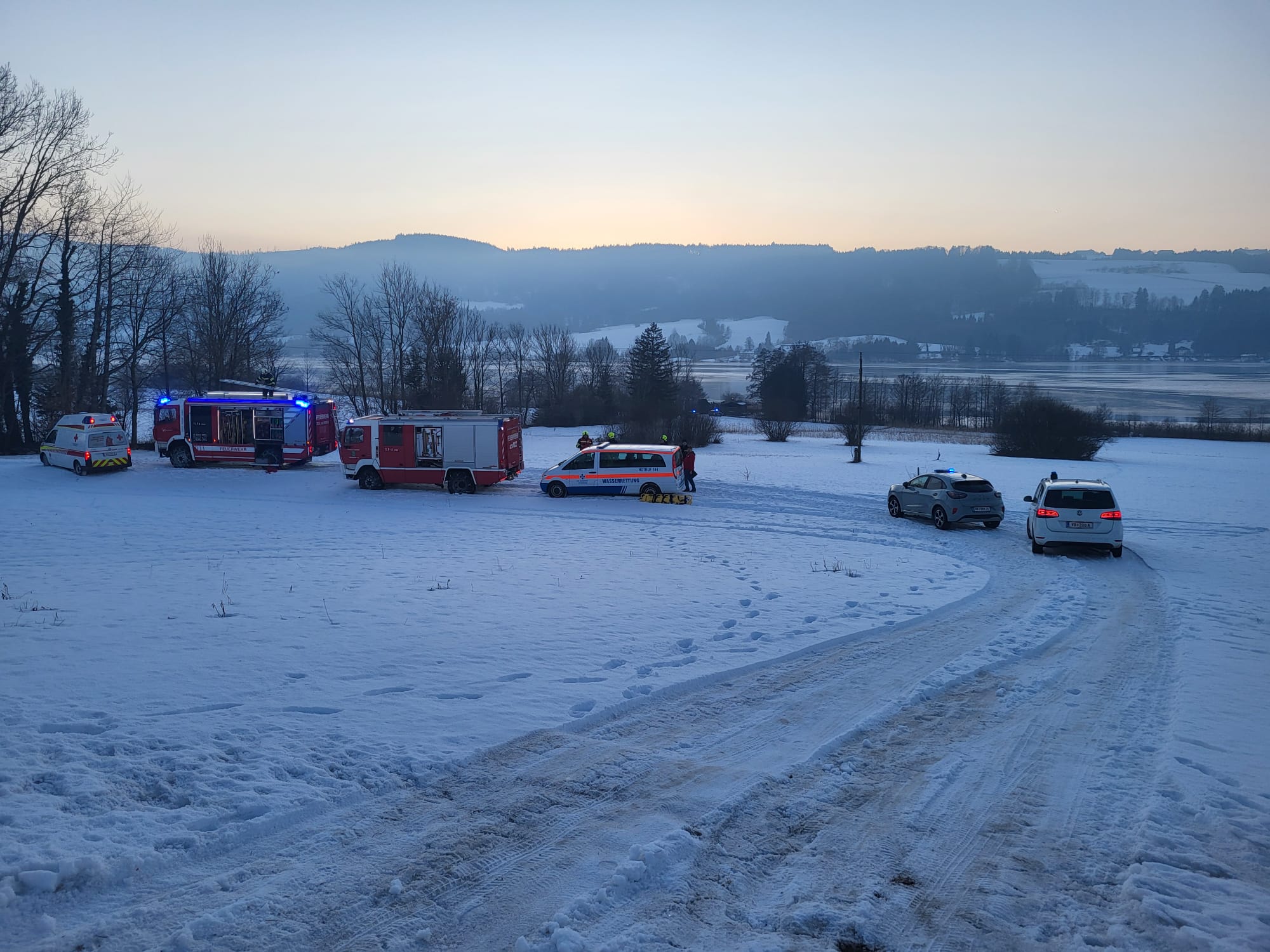 Kurz vor 16 Uhr wurden mehrere Feuerwehren sowie die Wasserrettung Salzburg mit den Ortsstellen Mondsee, Loibichl und Wallersee zu einem Eisrettungseinsatz am Irrsee alarmiert. Im Ortsteil Laiter waren zwei Personen auf der Eisfläche eingebrochen. Ein Ersthelfer, der den beiden zu Hilfe eilen wollte, brach ebenfalls im Eis ein. Er schaffte es jedoch aus eigener Kraft, sich aus dem Wasser zu befreien und ans Ufer zu gelangen.