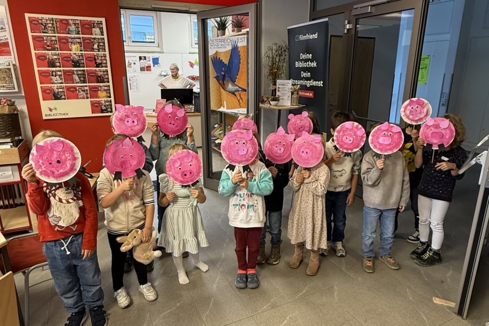Auch die Kinderveranstaltungen erfreuten sich wieder großer Beliebtheit. 10 Geschichtenzeiten für Kinder von 5 bis 9 Jahren und vier MINT-Workshops für Kinder ab 8 Jahren wurden 2025 veranstaltet. Zusätzlich fand ein Nachmittag mit Firmlingen, der alljährliche Ferienhit und die Lange Nacht der Bibliotheken statt. Auch wurden wieder Schulveranstaltungen in Kooperation mit den örtlichen Volksschulen angeboten. Wie z.B. ein lustiger Vormittag mit Sarah Orlovský und Michael Roher, den Gewinnern des Kinder- und Jugendbuchpreises 2025.