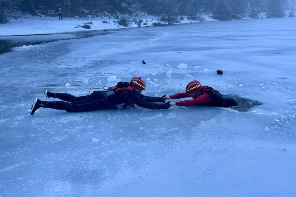 Im Rahmen der Übung wurden verschiedene Rettungsszenarien trainiert, darunter der Einbruch einer Person ins Eis sowie die schonende Rettung unter Einsatz spezieller Eisrettungsgeräte. Neben der richtigen Eigensicherung lag der Fokus insbesondere auf der koordinierten Zusammenarbeit der Einsatzkräfte und der raschen, aber sicheren Rettung von verunglückten Personen. Solche Übungen sind ein wesentlicher Bestandteil der laufenden Ausbildung, um im Ernstfall professionell und effizient helfen zu können.