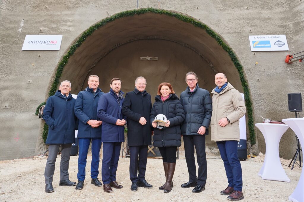 Der symbolische Festakt am Tunnelportal markiert den ersten wesentlichen Meilenstein für das neue Laufwasserkraftwerk an der Traun. Mit dem Spatenstich im Juni 2025 starteten bereits die wichtigsten Vorarbeiten für die dreijährige Bauzeit. Der Probebetrieb des Kraftwerks Traunfall ist für 2028 geplant.