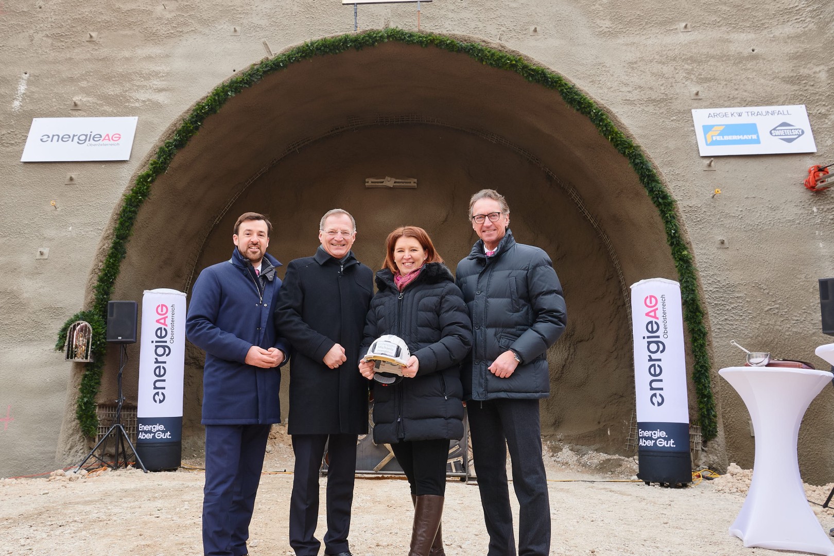 v.l.: CTO Alexander Kirchner, LH Thomas Stelzer, Tunnelpatin Michaela Langer-Weninger, CEO Leonhard Schitter © Energie AG