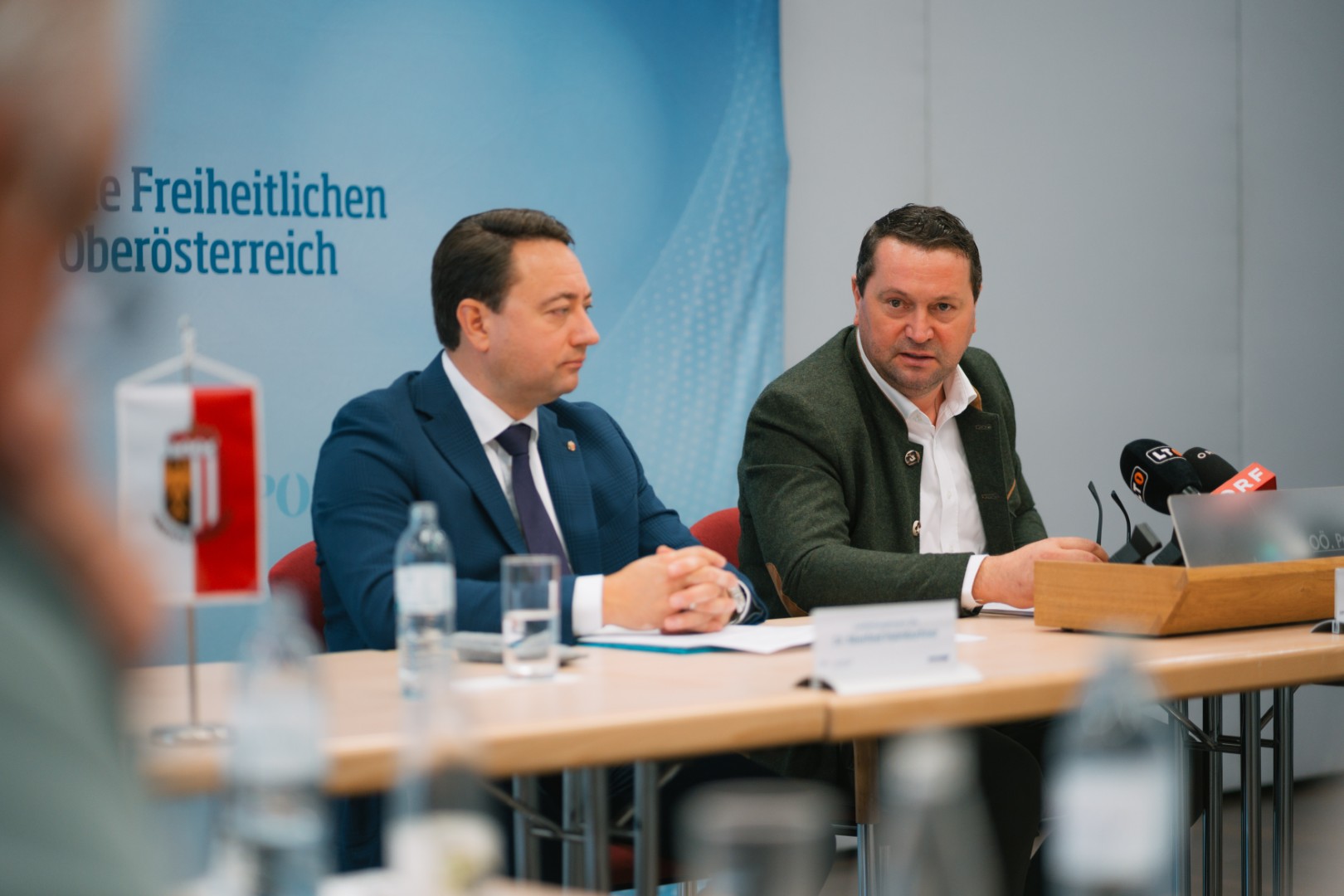 FPÖ-Landesparteiobmann, Landeshauptmann-Stv. Dr. Manfred Haimbuchner (li) und DI Dr. Arthur Kroismayr aus Regau, Landesobmann der Freien Bauern Oberösterreich © FPÖ OÖ