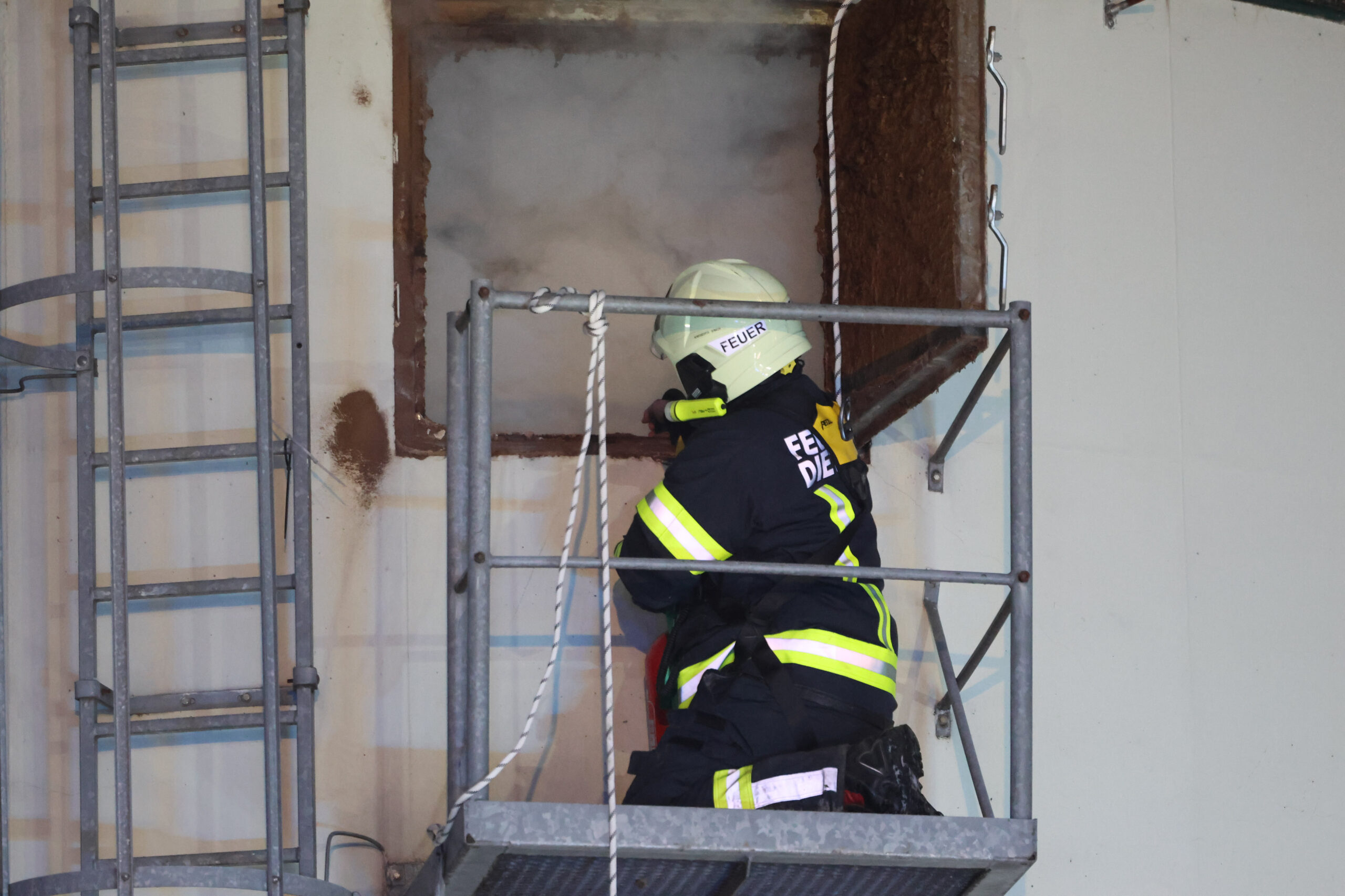 Sechs Feuerwehren standen am späten Montagnachmittag bei einem Silobrand bei einem Bäckereibetrieb in Laakirchen im Einsatz.