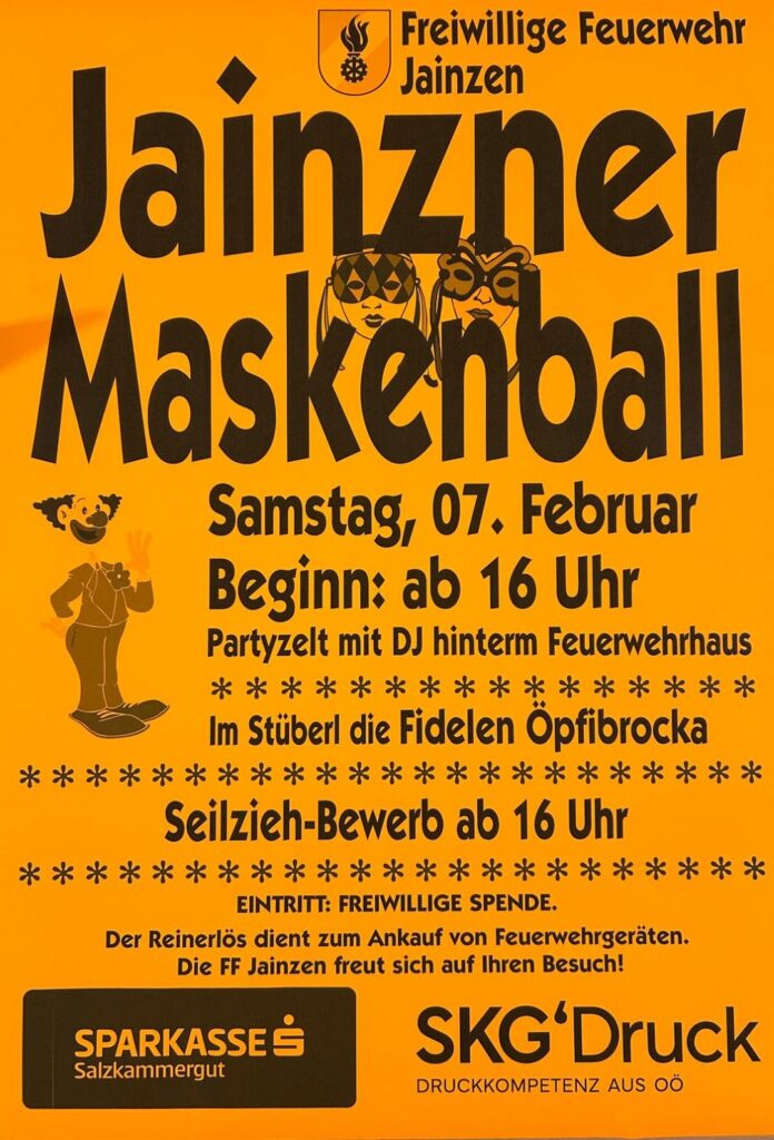 Die Freiwillige Feuerwehr Jainzen startet am 7. Februar ab 16 Uhr mit einer Neuauflage des legendären Jainznerballs beim Feuerwehrhaus (Jainzentalstraße 42, 4820 Bad Ischl).