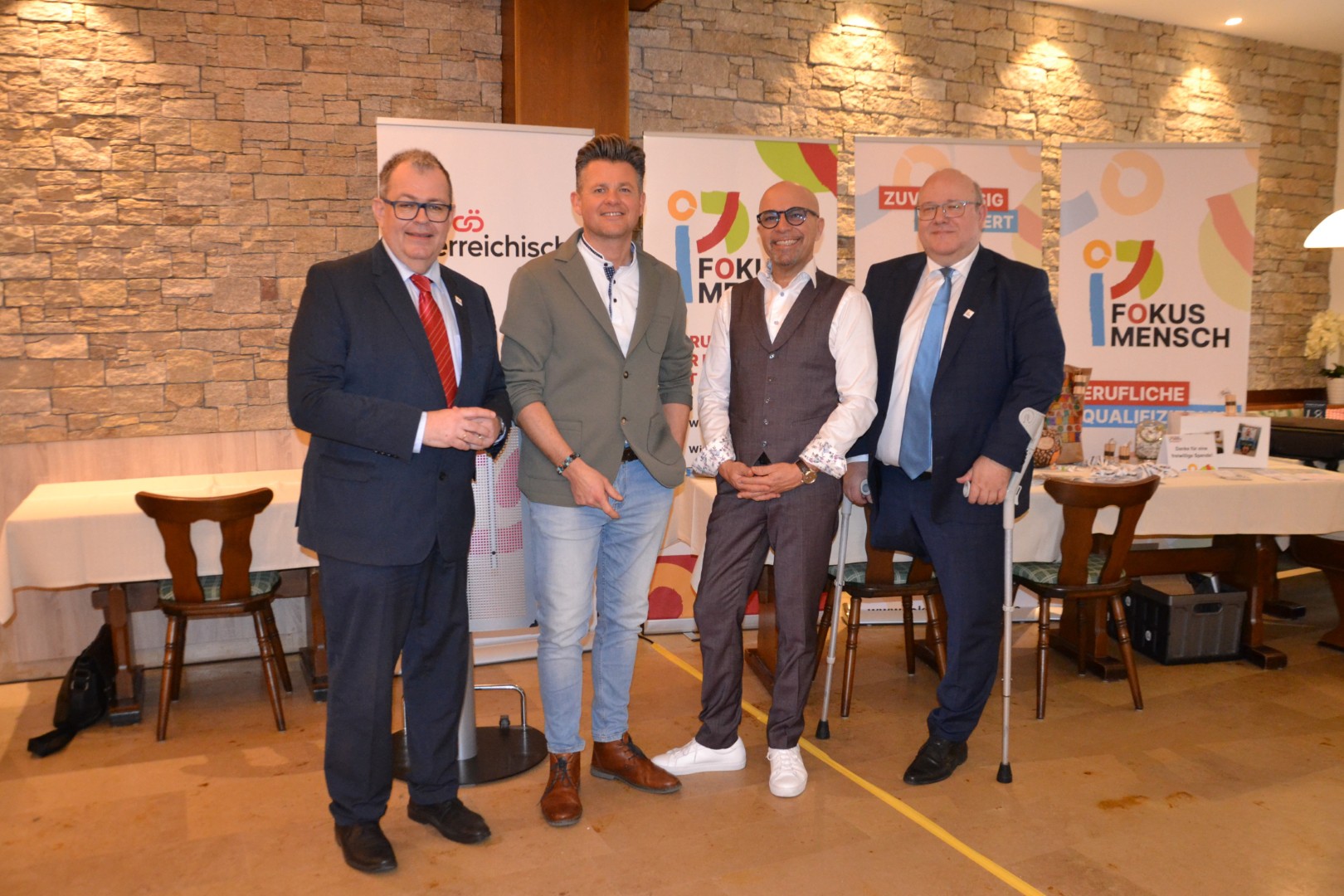 Mit diesem Motto lud Fokus Mensch zum Neujahrsempfang in Wels, bei dem Wortwitz-reiches Kabarett, g’standene Wirtshausmusi und lebensnahe Einblicke in die Welt von Fokus Mensch geboten wurden. Rund 100 Gäste freuten sich über einen unterhaltsamen Tag mit Entertainer Gernot Pachernigg als Moderator, dem Kabarettisten Max Mayerhofer mit seinem Programm „69 Max Minuten“ und dem musikalischen Quintett „Die Schweinshax’n“. Für umfassende Barrierefreiheit war u.a. dank Induktiver Höranlage und baulicher Gegebenheiten gesorgt.