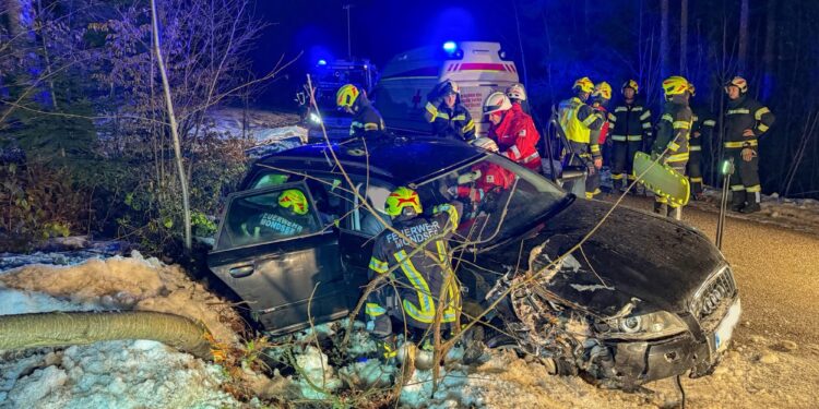 In der Nacht auf Samstag kam es auf der Gemeindestraße Irrsberg Inn Mondseeland zu einem schweren Verkehrsunfall. Ein 18-jähriger Probeführerscheinbesitzer verlor auf schneebedeckter Fahrbahn die Kontrolle über sein Fahrzeug.