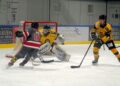 Nun aber zum spannenden Spiel gegen den WEV Wien: Von Beginn an zeigten die Sharks, wer der Herr im Haus – sprich in der MUKI Eisarena – ist. Und so klingelte es bereits in der 4. Spielminute mit dem 1:0 der Haie: Ian Motil eroberte den Puck, spielte ideal auf Simon Reder ab, und dieser versenkte die Hartgummischeibe im Tor der Gäste. In diesem Stil ging es weiter. Die Angriffe der aggressiven Wiener wurden allesamt vom hervorragenden Sharks-Goalie Tobias Windhofer und der gut formierten Abwehr der Haie zunichte gemacht. In Spielminute 15:24 folgte eine tolle Kombination von Marc-Andre Dorion zu Moritz Neurauter, perfektes Abspiel auf Dominik Stöttner – und das Tor zum 2:0 sowie der Pausenstand nach 20 Minuten waren erledigt.