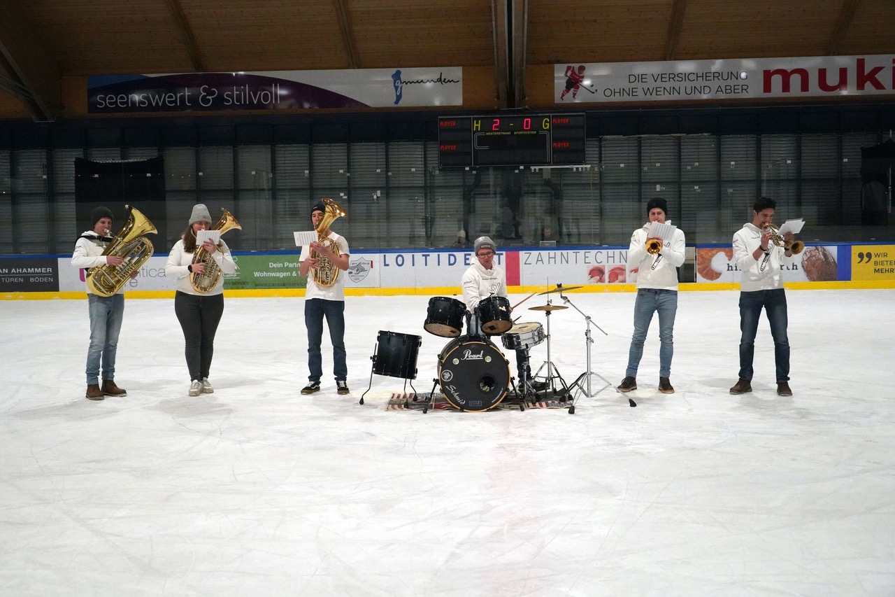 In der Drittelpause trat eine junge Brassband aus Laakirchen am Eis auf und begeisterte das Publikum auf den vollen Rängen. Im zweiten Spielabschnitt bewahrten die Sharks zwar die Nerven, konnten aber den starken Auftritt des ersten Drittels nicht wiederholen. So blieb es beim 2:0 für die Hausherren. Auch in der zweiten Pause gab es wie immer das beliebte Puckwerfen-Spiel von der Tribüne aus – für die drei Pucks, die dem Mittelpunkt am nächsten kamen, gab es schöne Preise.