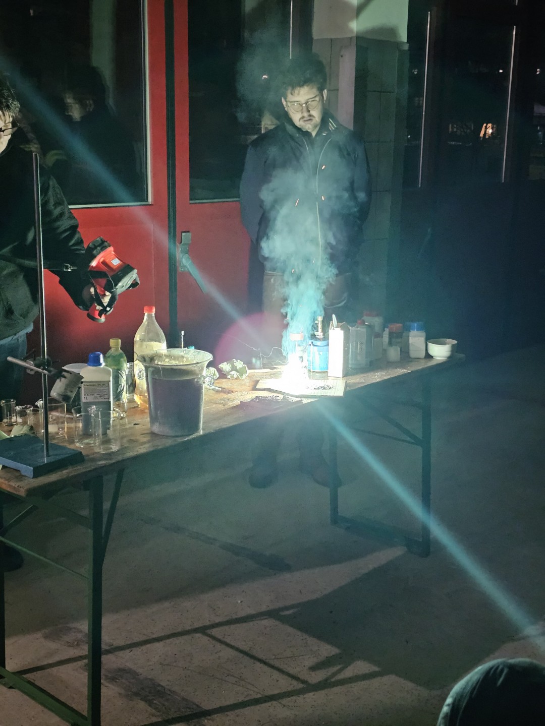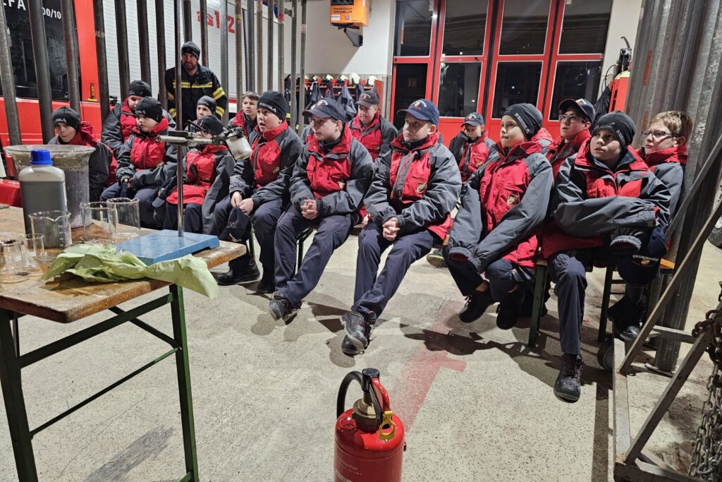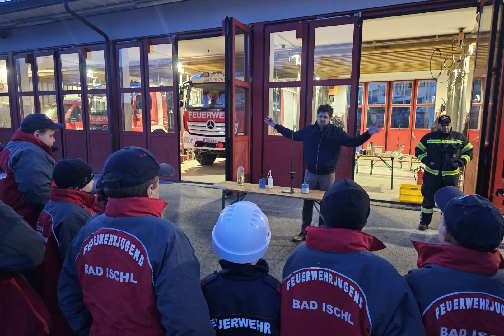 Lukas Hayböck, seines Zeichens aktiver Chemielehrer und Bruder von Jugendbetreuer David, besuchte den wöchentlichen Übungsabend. Lukas erklärte den interessierten Burschen wie ein Fettbrand entsteht und ging auf die chemischen Vorgänge bei einer Verbrennung ein. Nach dem Theorieteil wurde die Fahrzeughalle kurzerhand zum Chemiesaal umfunktioniert. Die Retter von morgen staunten nicht schlecht als der zuvor besprochene Fettbrand in der Praxis gezeigt wurde. Auch ein bengalisches Feuer wurde simuliert und die Gefahren dabei besprochen.