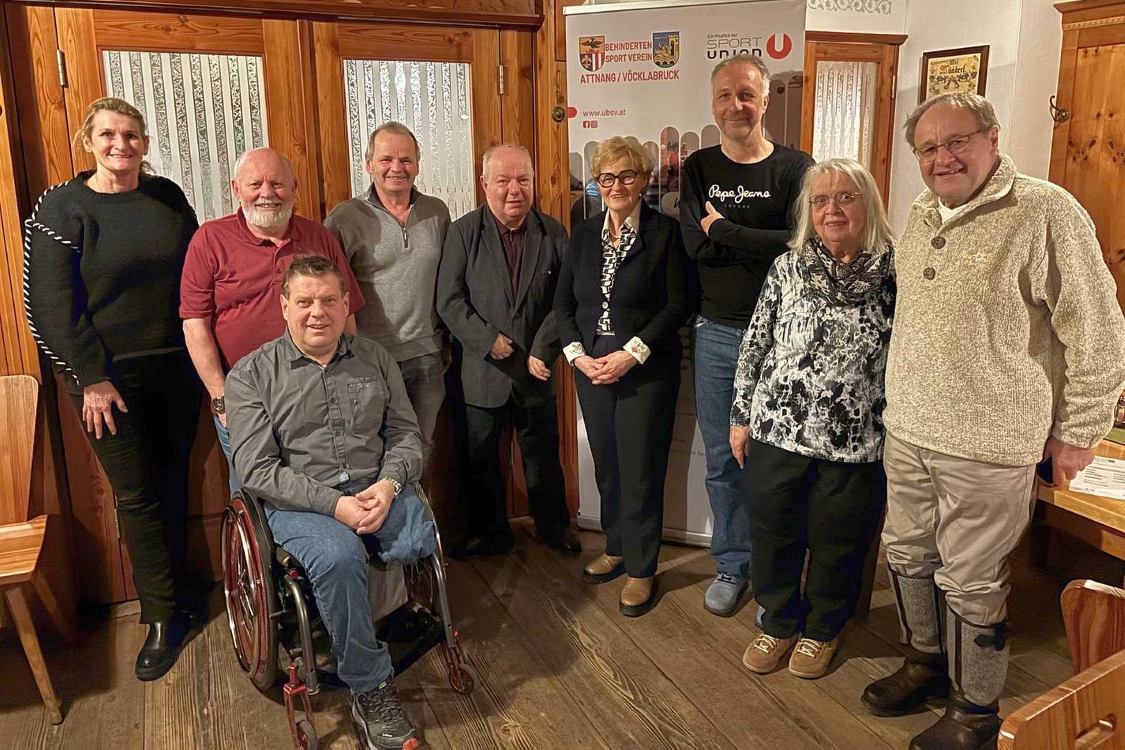 Gruppenfoto nach der Wahl. v.l.n.r.: Sportreferentin der Stadt Vöcklabruck Tanja Grander, Kassier Horst Penteker, davor Gerald Hohensinn, Sektionsleiter Manfred Eisenknapp, Obm. Kons. Dietmar Ematinger, Präsidentin des OÖ. Behindertensportverband Gerda Weichsler-Hauer, Obm.-Stv. Andreas Reiter, Hedwig Ematinger und Vizepräsident Konsulent Wolfgang Pesendorfer Sportunion OÖ © 2026 by UBSV