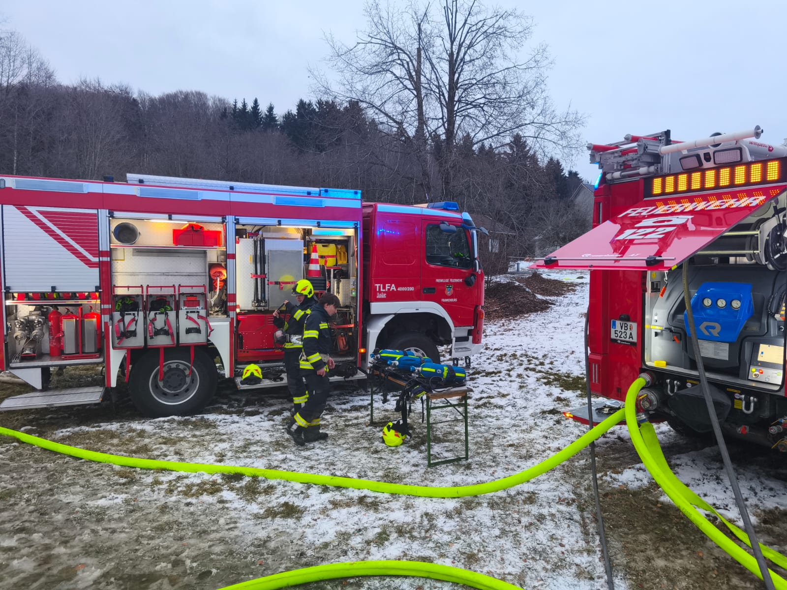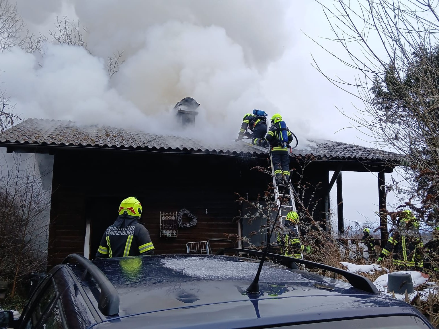 Waldarbeiter welche auf den Brand aufmerksam wurden, kamen dem Verletzen zur Hilfe und brachten ihn in Sicherheit. Er wurde nach der Erstversorgung durch das Team der Rot Kreuz Ortstelle Frankenburg und unseren Feuerwehr- und Gemeindearzt ins Krankenhaus eingeliefert.