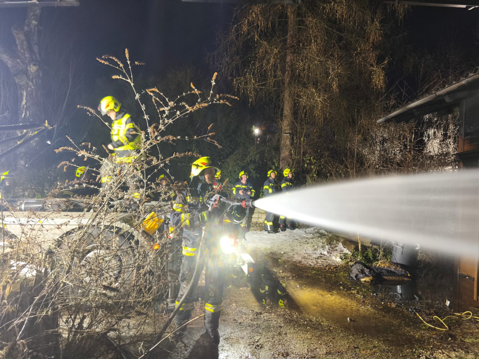 Die zehn alarmierte Feuerwehren führten, umgehend nach dem Eintreffen am Einsatzort, einen umfassenden Löschangriff durch. Durch mehrere Versorgungsleitungen konnte die Löschwasserversorgung sicher gestellt werden. Im Anschluss waren umfangreiche Nachlöscharbeiten erforderlich. Die Feuerwehr Frankenburg stand mit allen Fahrzeugen und 41 Mitgliedern im Einsatz.