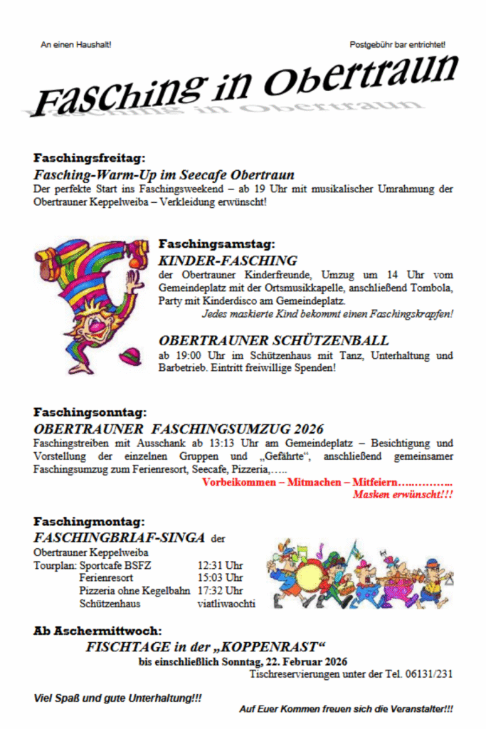 + Obertrauner Faschingbrief mit den „Keppelweibern“ in den Gasthäusern ab Mittag!