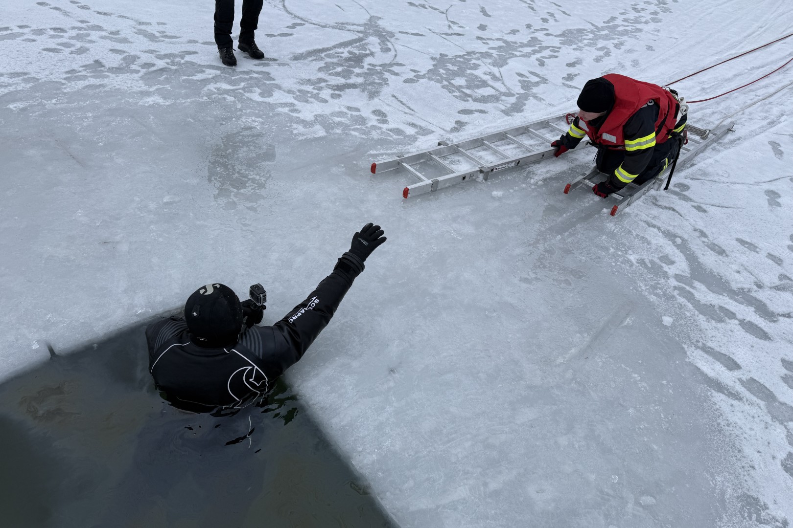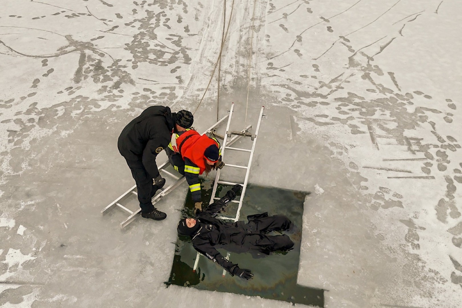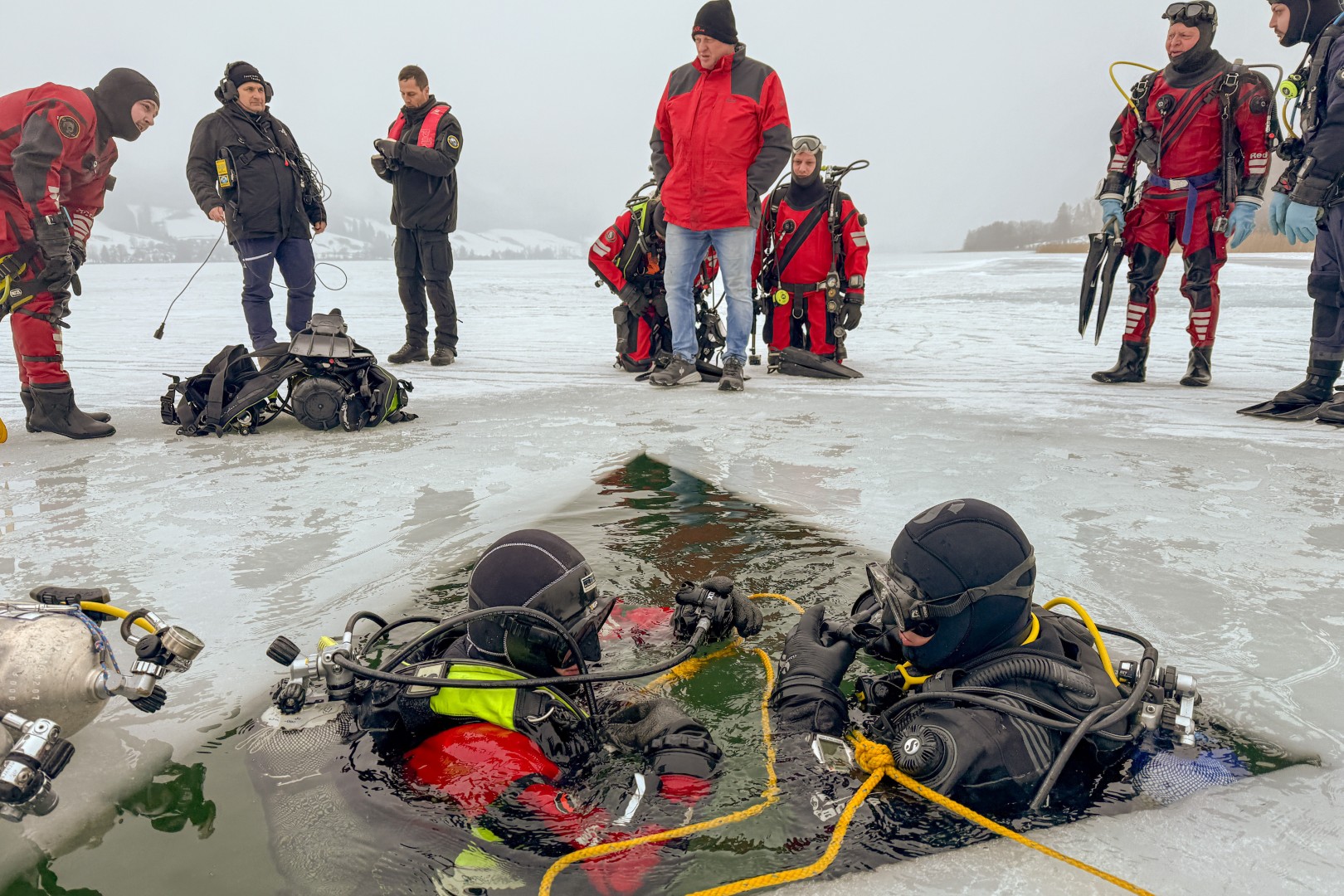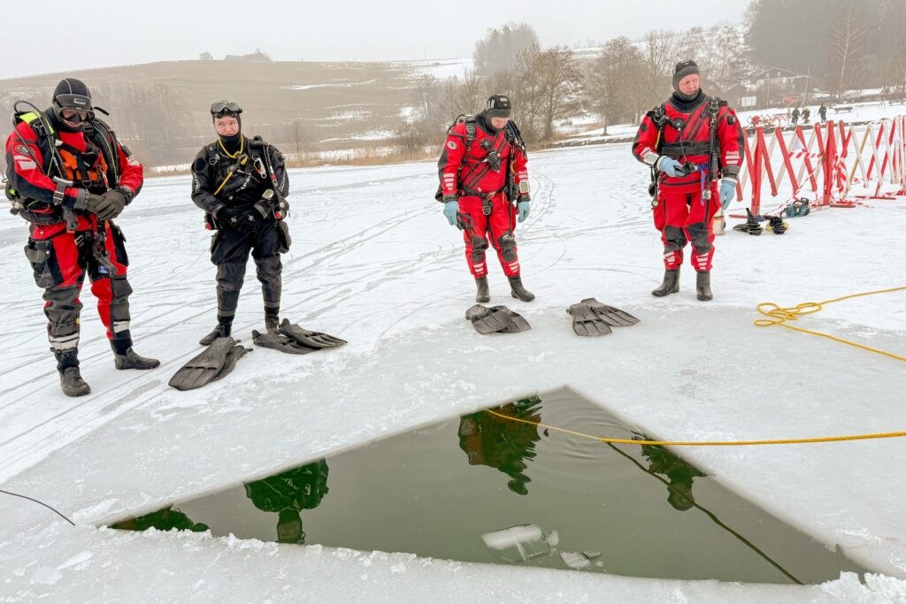 Feuerwehrtaucher unter dem Eis