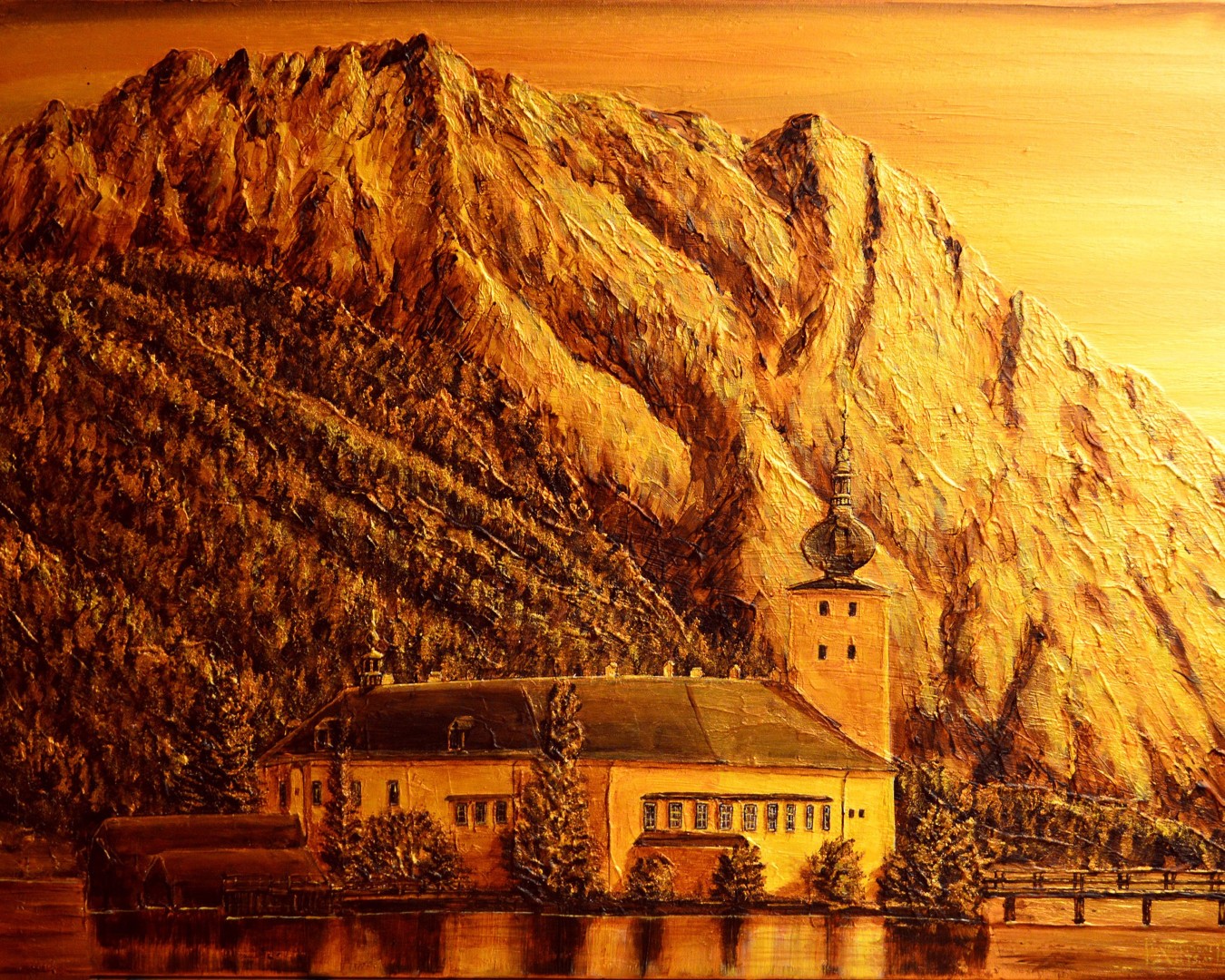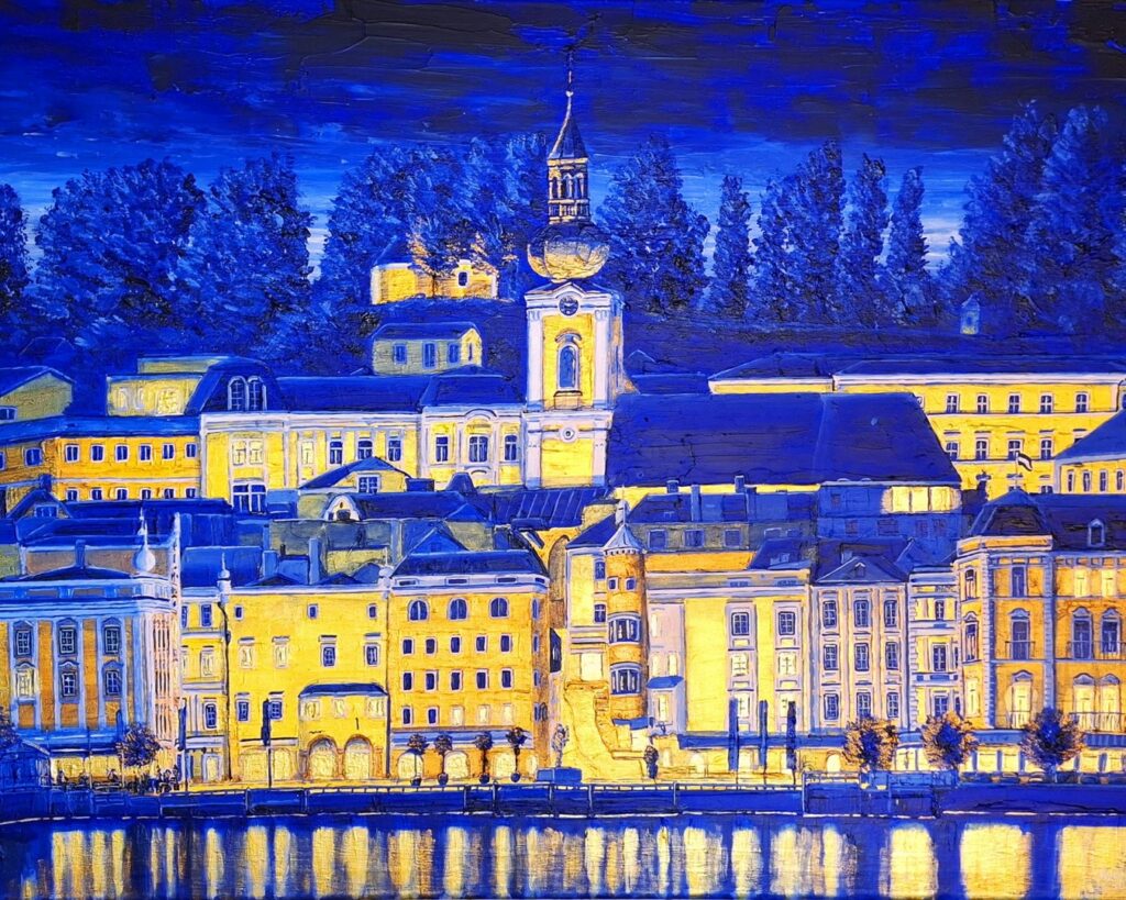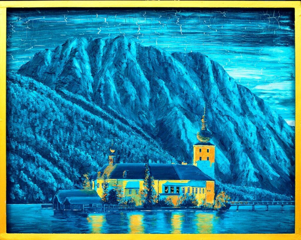 Gmunden und seine schönsten Orte und Winkerl, inspiriert durch die Jugendjahre, interpretiert durch die Erlebnisse mit der Stadt und seinen Bewohnerinnen und Bewohnern, gemalt in Acryl und Goldfarben. Zu sehen an einem besonderen Platzerl unserer Stadt – dem Atelier am Markt.