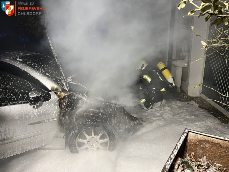 Am Donnerstag ist es am späten Nachmittag in Ruhsam in der Gemeinde Ohlsdorf zu einem PKW-Brand gekommen. Das Feuer brach in einer Hauseinfahrt aus und drohte bereits auf das angrenzende Wohnhaus überzugreifen.