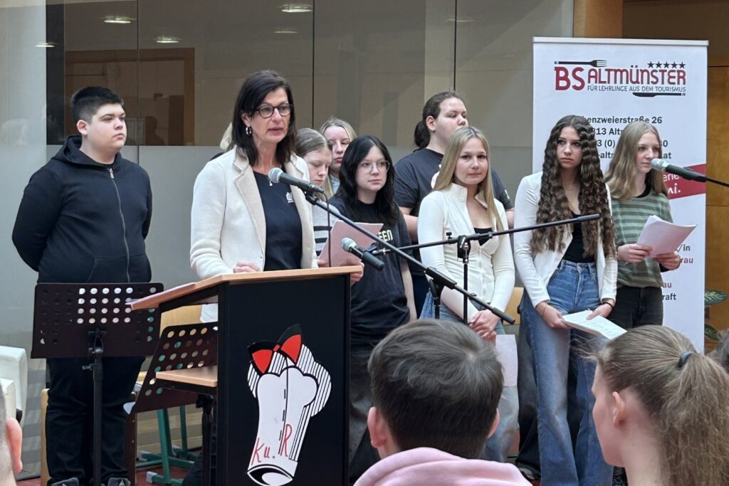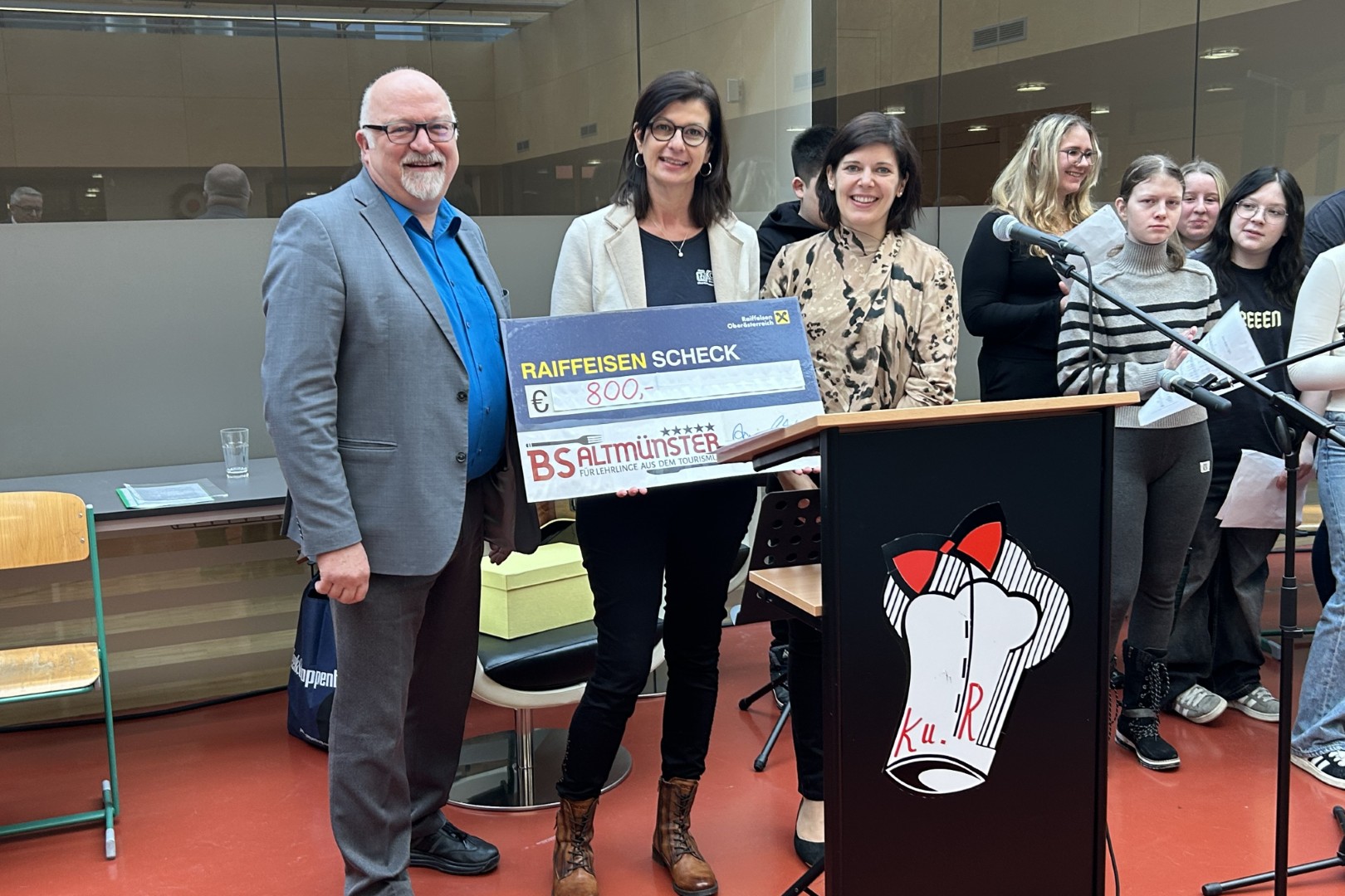 Altmünster, 31. Jänner 2026. Im Rahmen der religiösen Abschlussfeier des zweiten Lehrgangs an der Berufsschule Altmünster – für Tourismuslehrlinge wurde eine Spende in Höhe von € 800,- an MOKI – Mobile Kinderkrankenpflege Oberösterreich übergeben. Die feierliche Übergabe erfolgte an die stellvertretende geschäftsführende Landesvorsitzende Frau Mag. Silber.